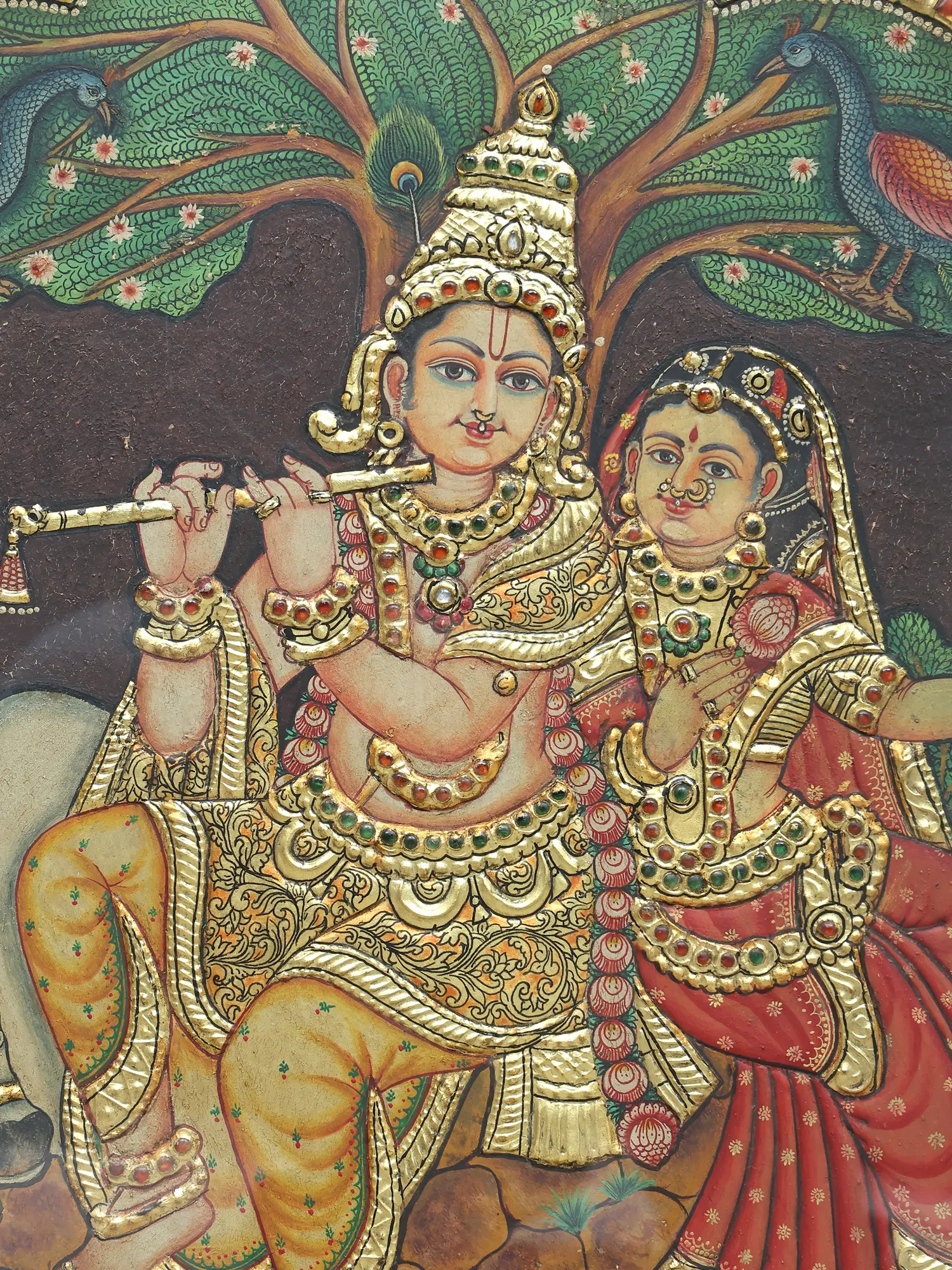 Standing Radha Krishna Tanjore Painting | Traditional Colors with 24 Karat Gold