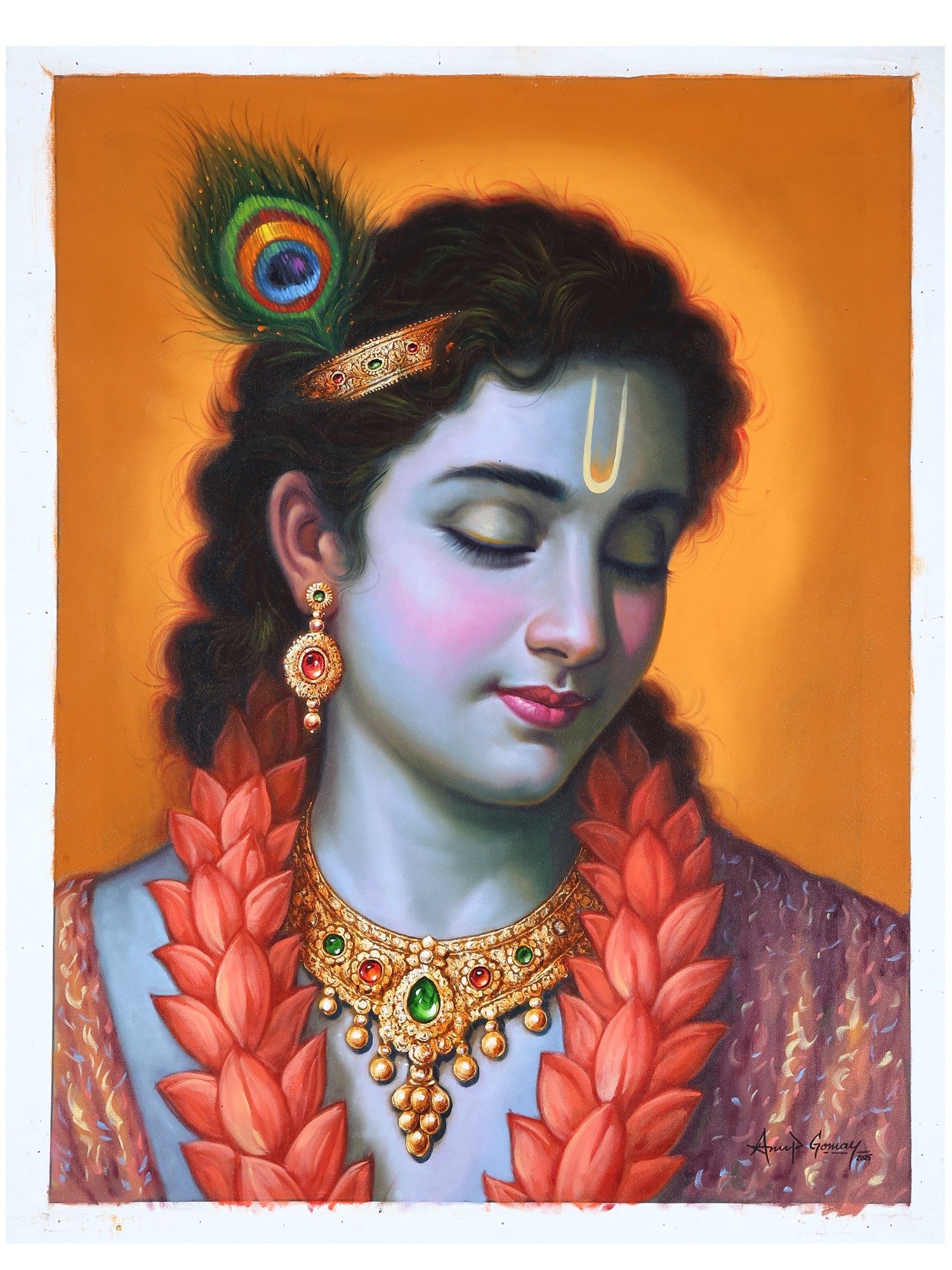 Bal Lila of Little Krishna | Traditional Colors with 24 Karat Gold | Tanjore Painting with Frame