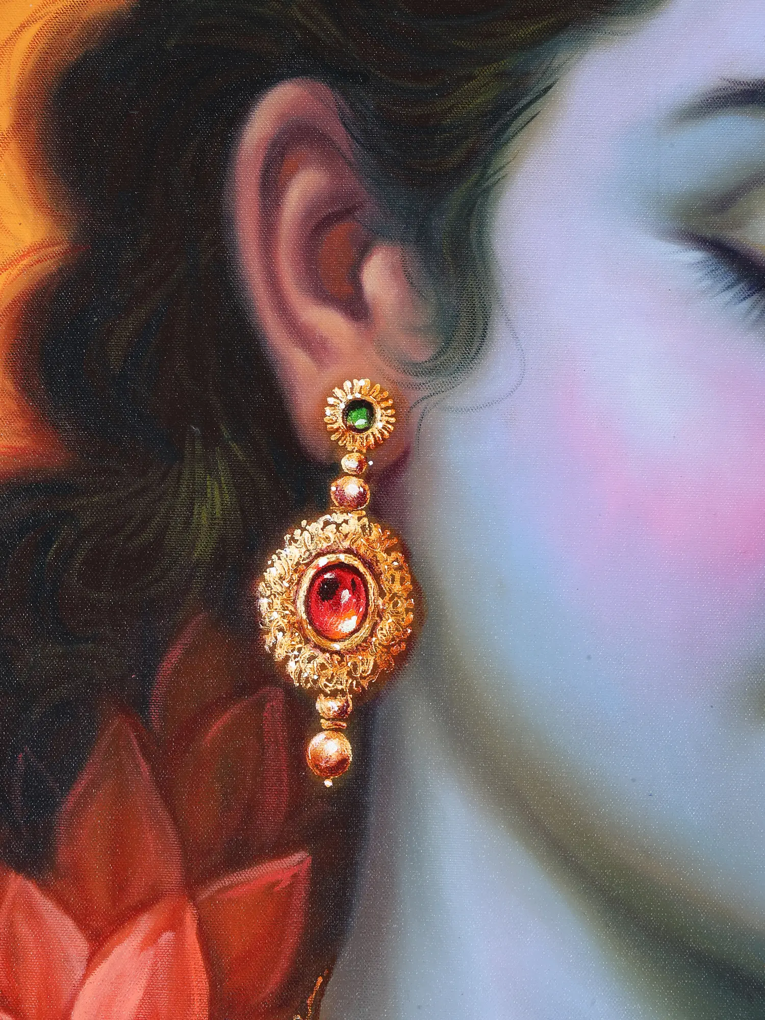 Huge Tanjore Mandapam of Lord Krishna with Rukmini and Satyabhama | 24 Karat Gold Work