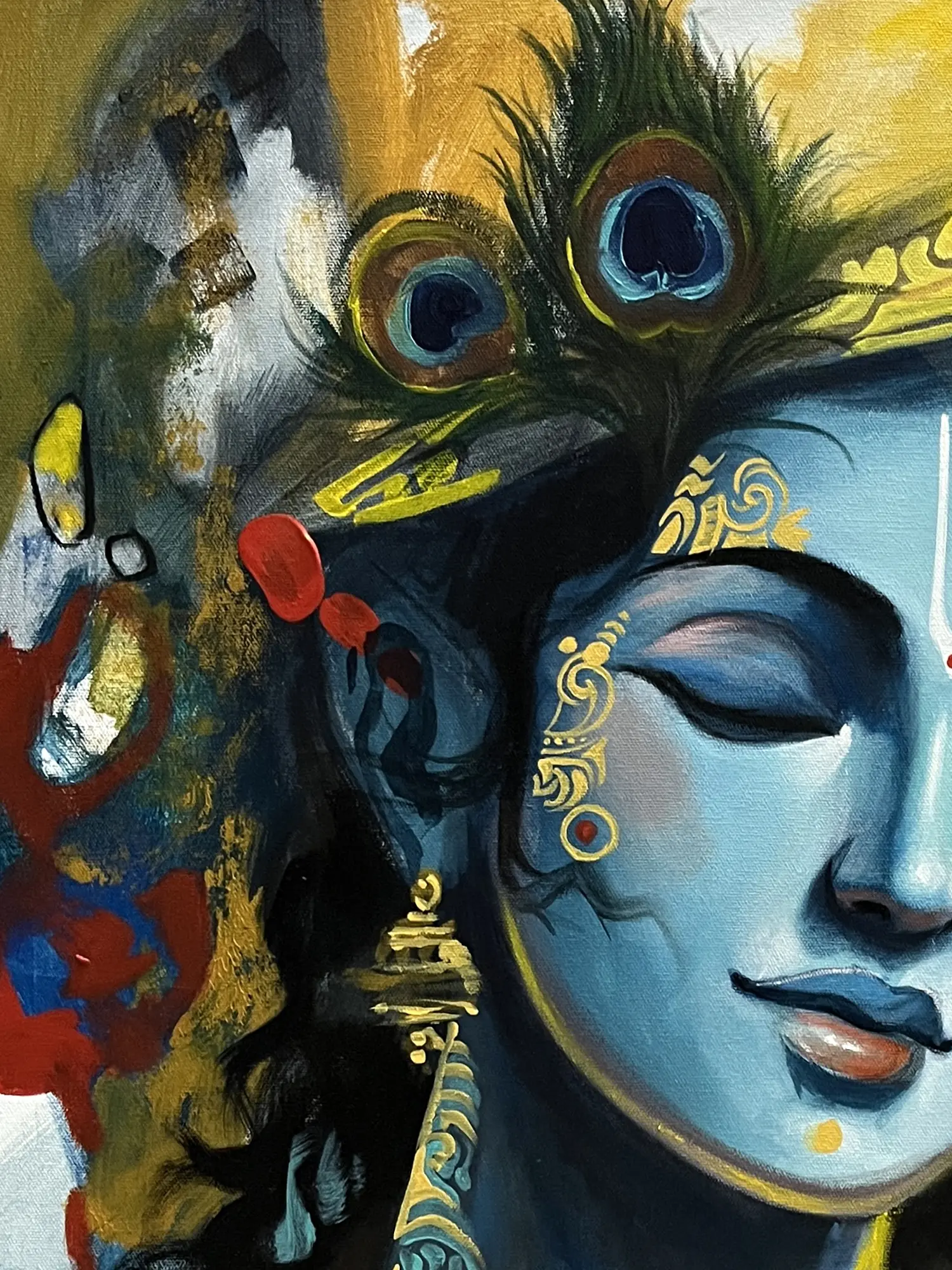 Devotion Of Lord Krishna | Acrylic On Canvas | By Arjun Das