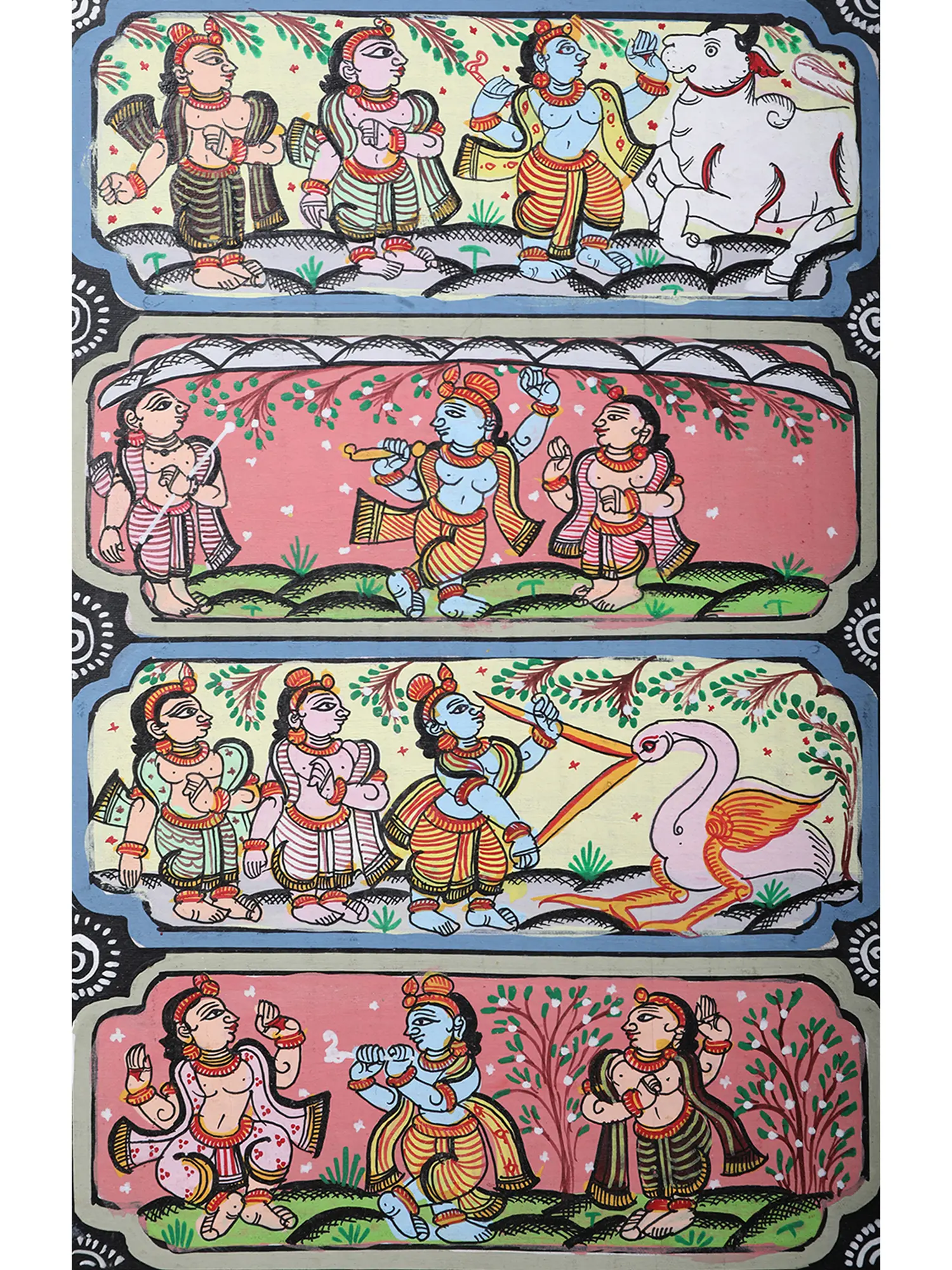 Krishna Story - Krishna Leela | Pattachitra Painting | Natural Color On Palmleaf Engraving | By Sushant Maharana