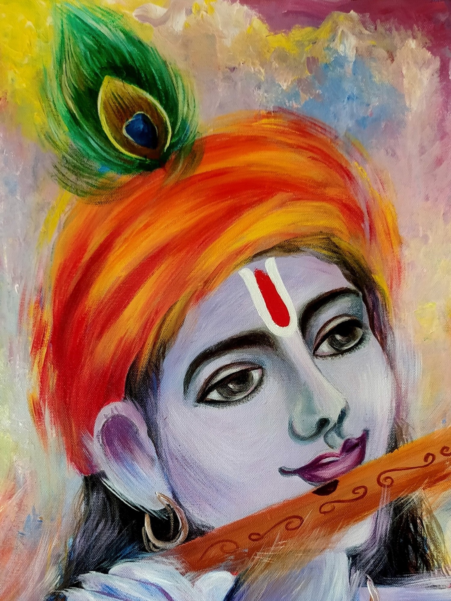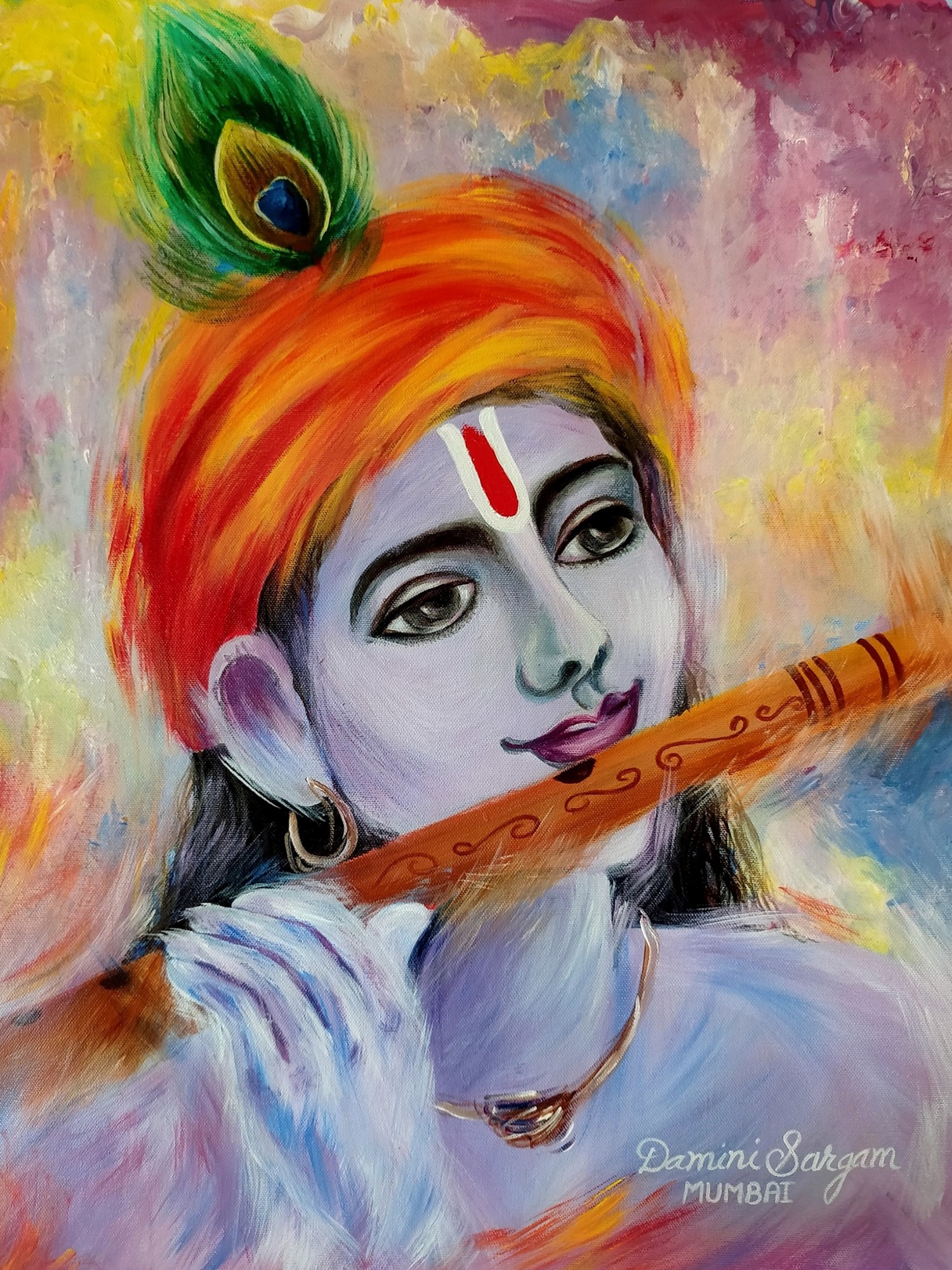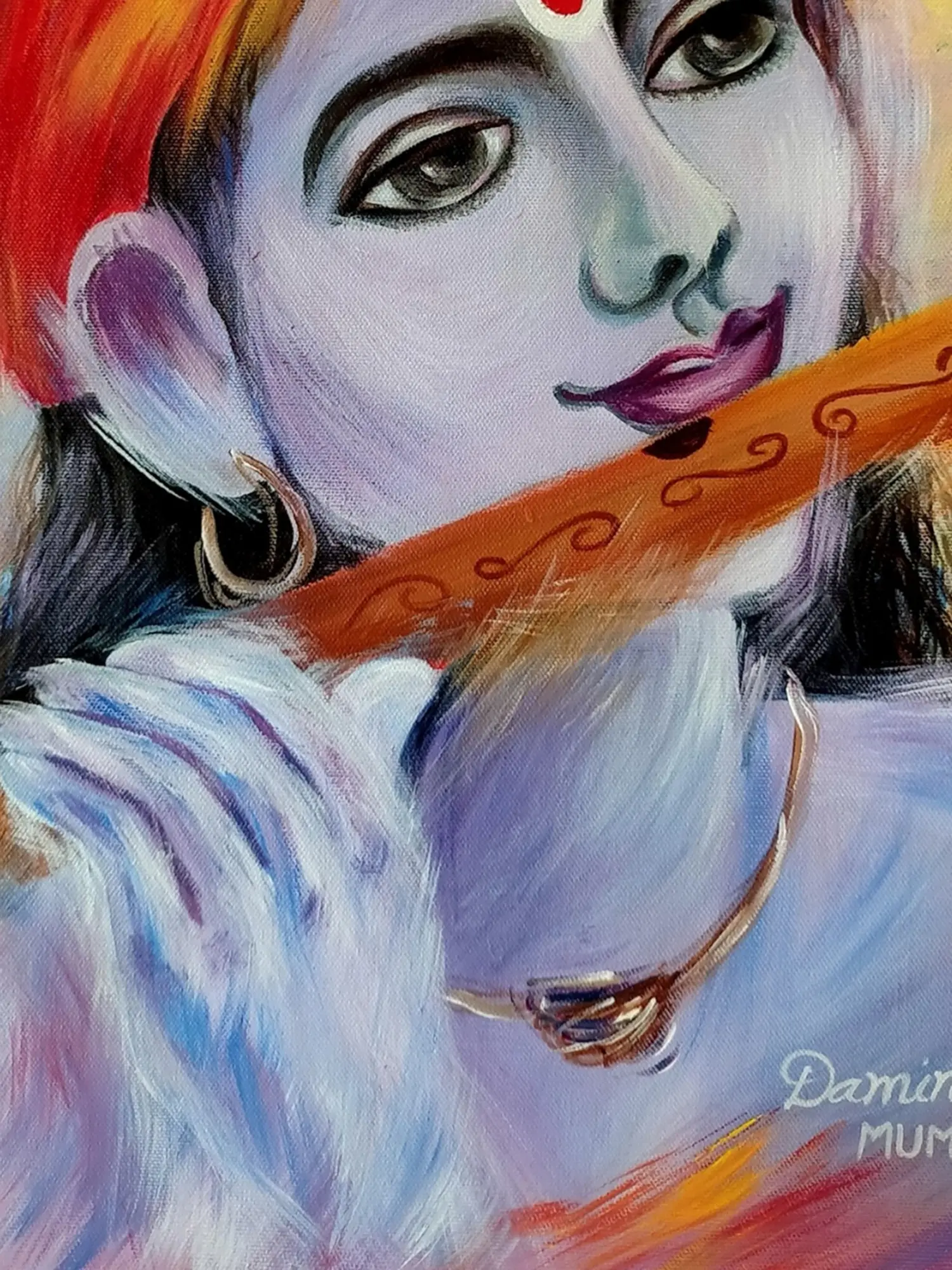 Lord Krishna And Cow | Acrylic On Canvas | By Arjun Das