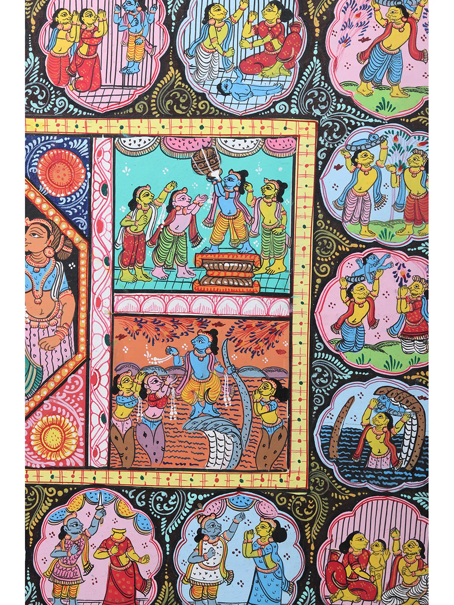 Krishna Story - Krishna Leela | Pattachitra Painting | Natural Color On Palmleaf Engraving | By Sushant Maharana