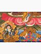 A Thangka is a traditional Tibetan Buddhist painting that usually depicts a Buddhist Deity (Buddha or Bodhisattva), a scene, or a mandala. These paintings are considered important paraphernalia in Buddhist rituals. They are used to teach the life of the Buddha, various lamas, and Bodhisattvas to the monastic students, and are also useful in visualizing the deity while meditating. One of the most important subjects of thangkas is the Bhavacakra (the wheel of life) which depicts the Art of Enlightenment. It is believed that Thangka paintings were developed over the centuries from the murals, of which only a few can be seen in the Ajanta caves in India and the Mogao caves in Gansu Province, Tibet. Thangkas are painted on cotton or silk applique and are usually small in size. The artist of these paintings is highly trained and has a proper understanding of Buddhist philosophy, knowledge, and background to create a realistic and bona fide painting.