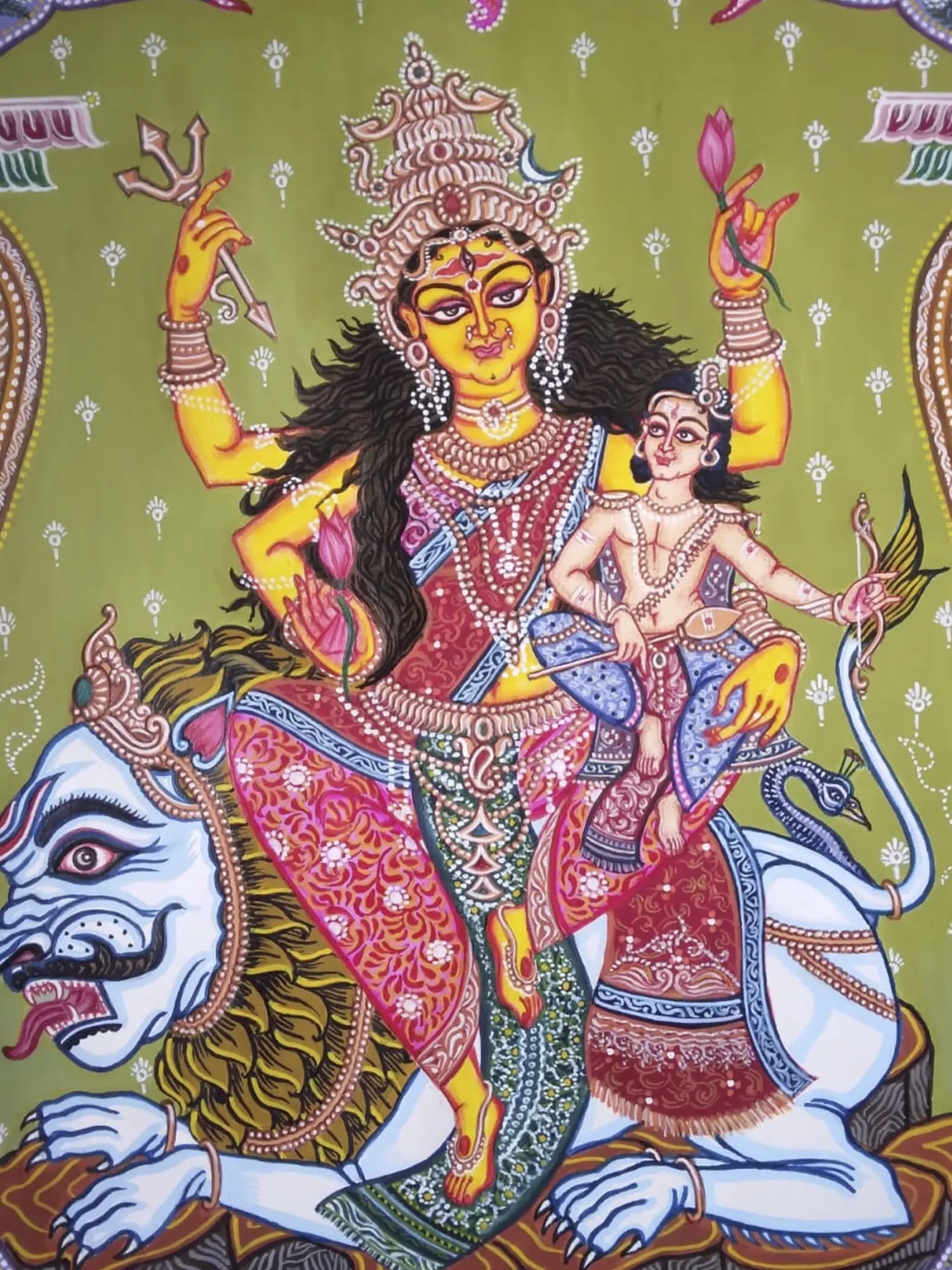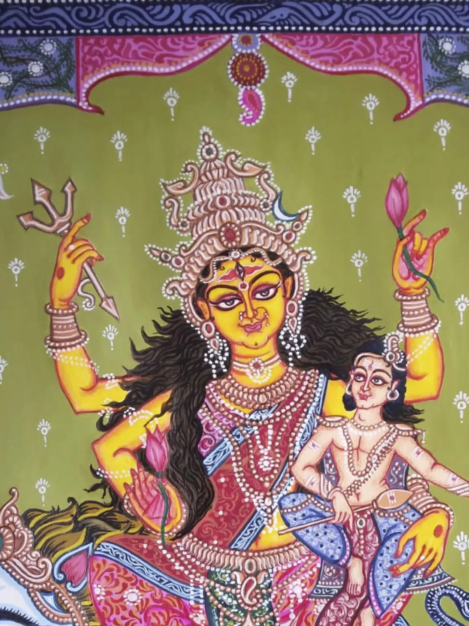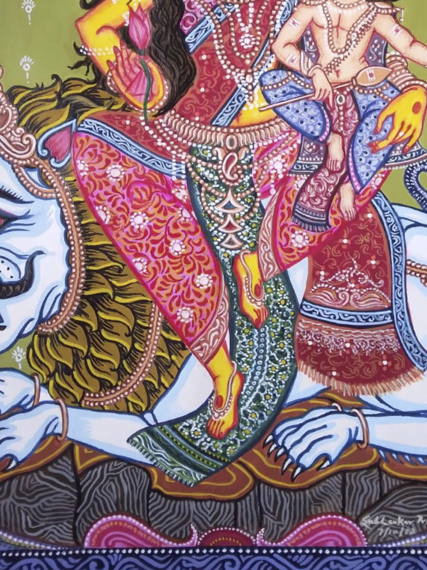 Goddess Parvati Seated On Lion | Acrylic On Canvas | By Damini Sargam