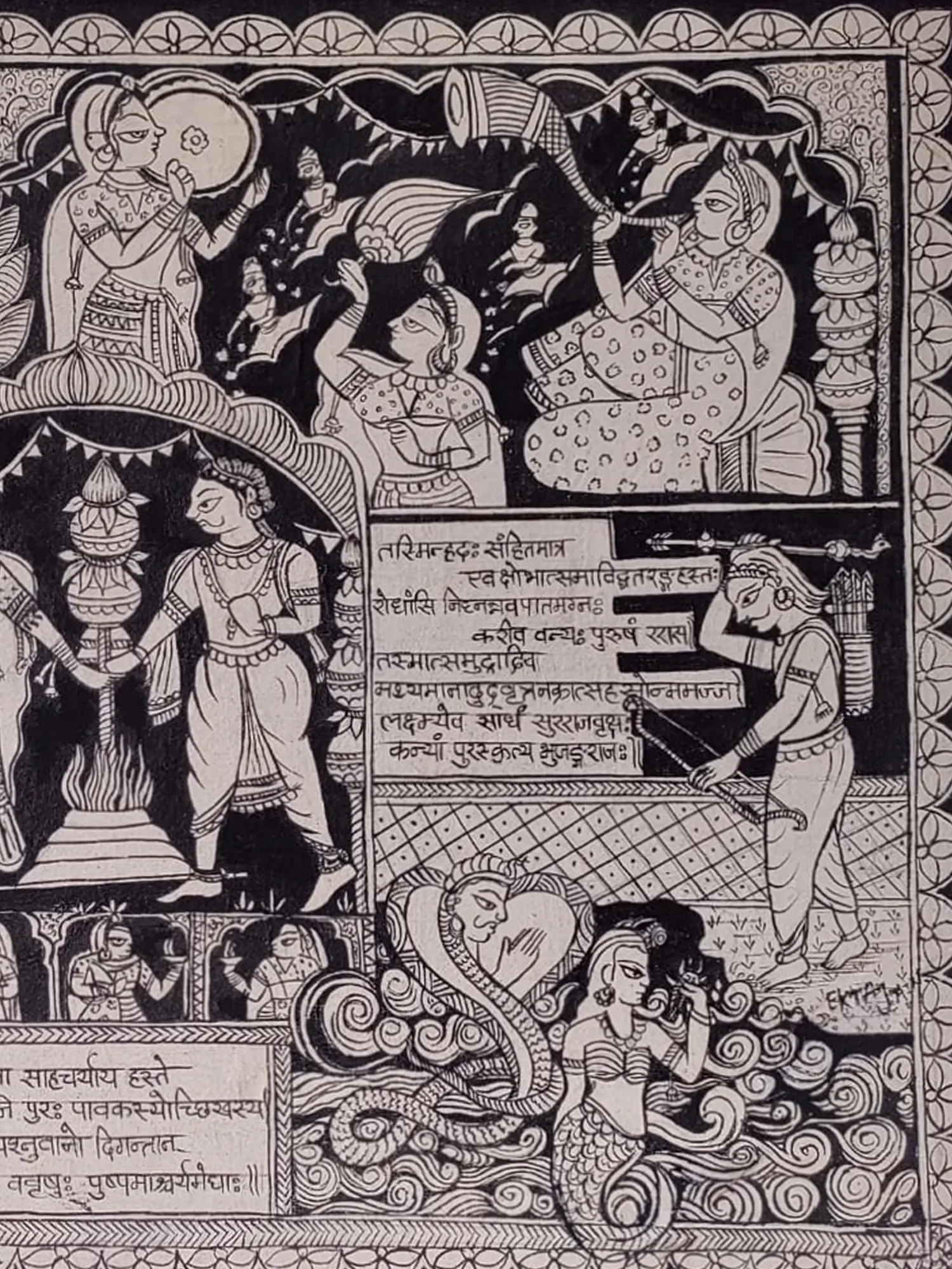 Fishing Net Warli Painting | Natural Color On Cotton Cloth | By Sanjay Balakrishna Parhad