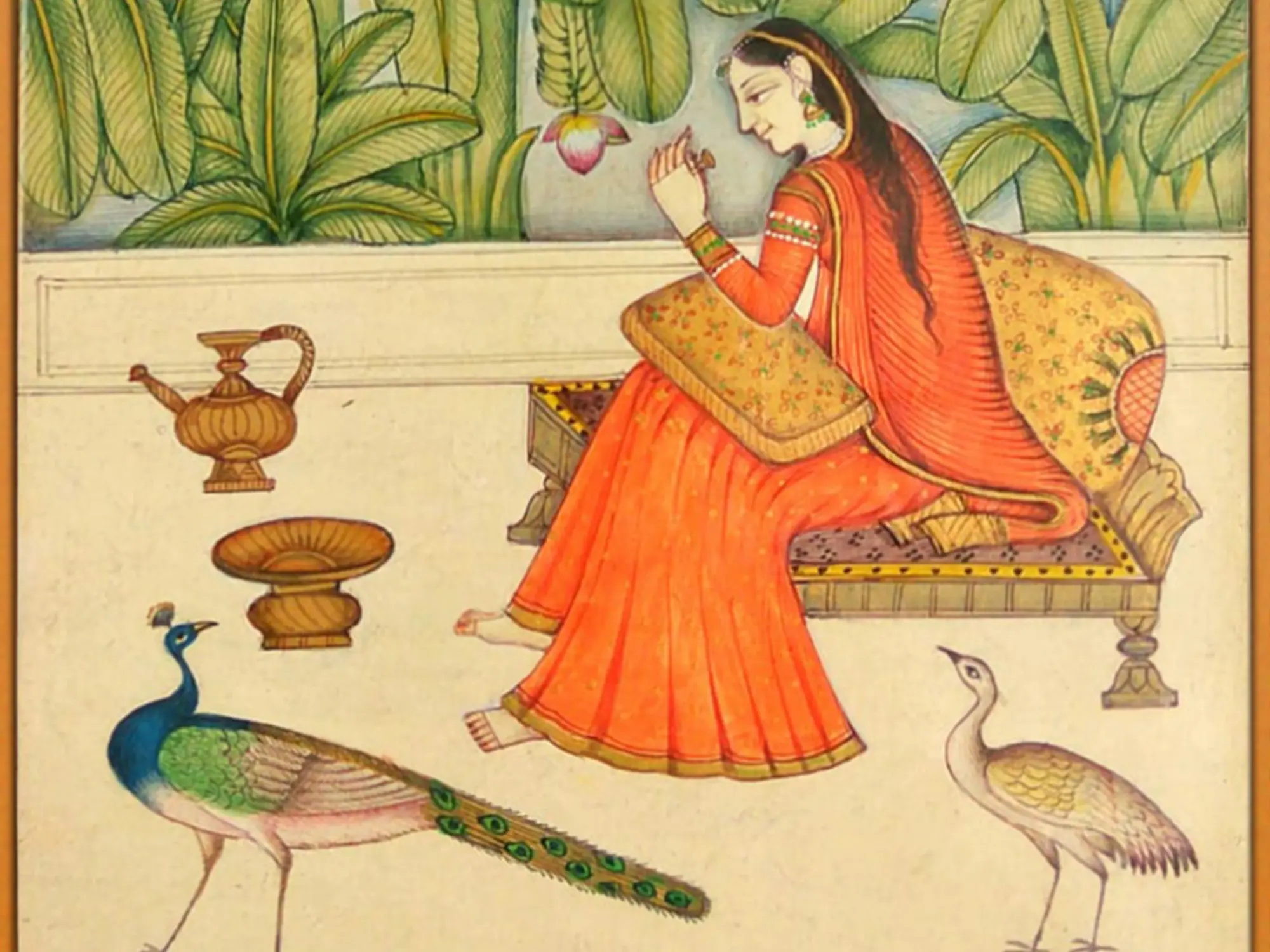 Gaurav Rajput’s mastery of watercolor is evident in every delicate stroke, bringing to life a scene of refined elegance. Rendered on fine paper, the pigments blend seamlessly, creating soft transitions and a rich depth that speaks to the artist’s profound understanding of his medium. You'll appreciate the meticulous attention to detail, from the flowing fabric of the woman's attire to the intricate patterns on her cushions and the vibrant plumage of the surrounding fauna.