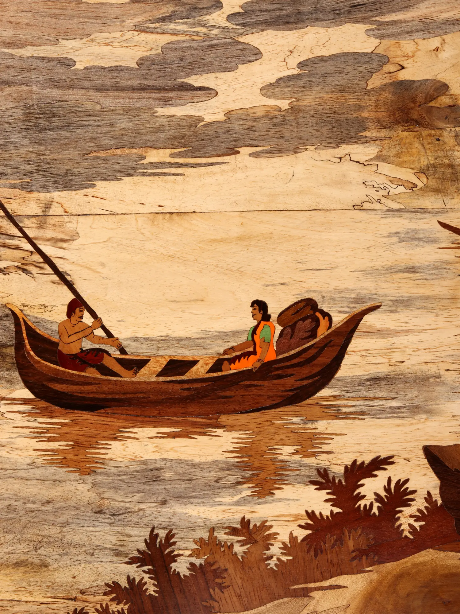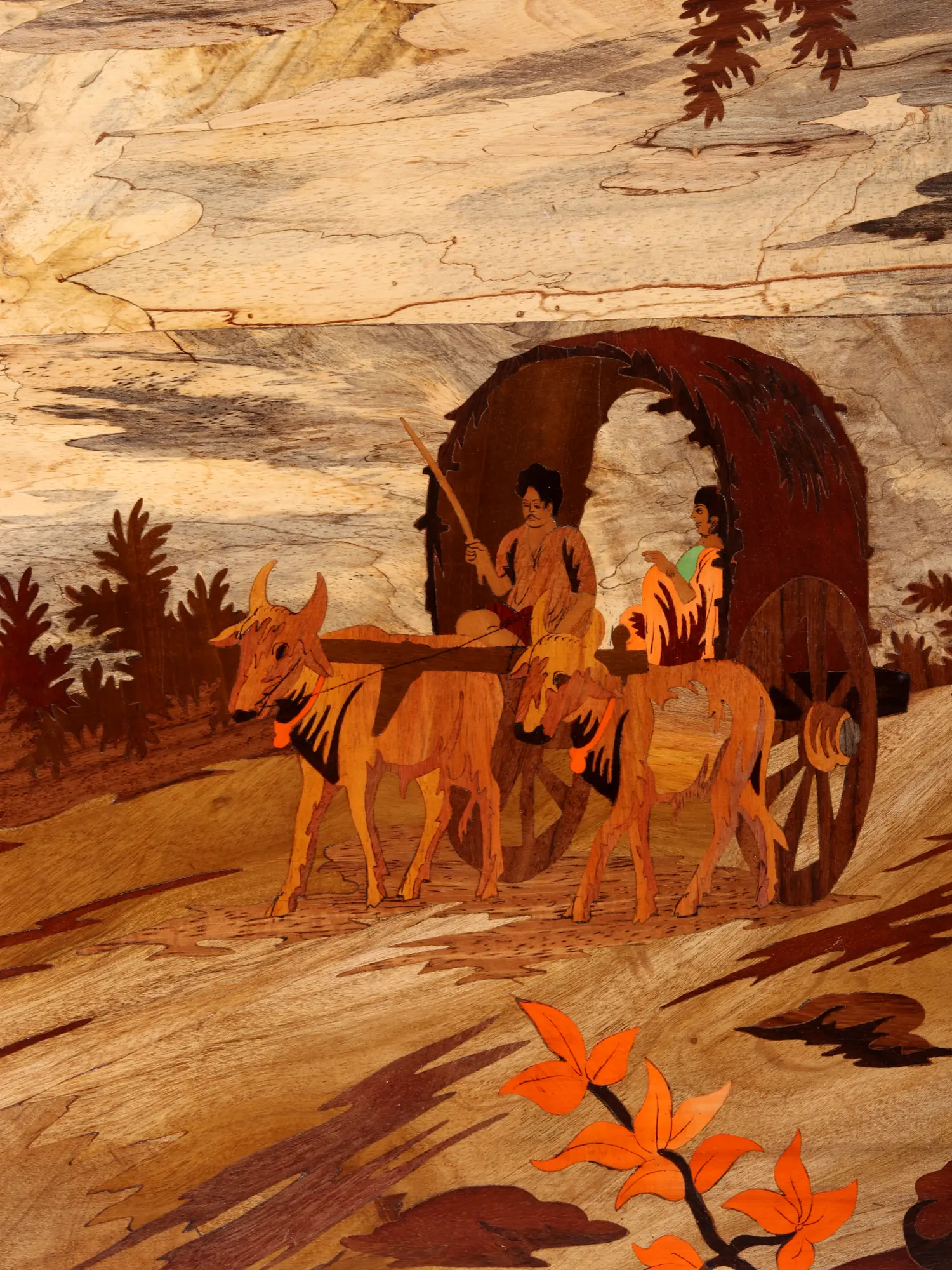 A Tranquil Village Scene: A Masterpiece of Mysore Wood Inlay