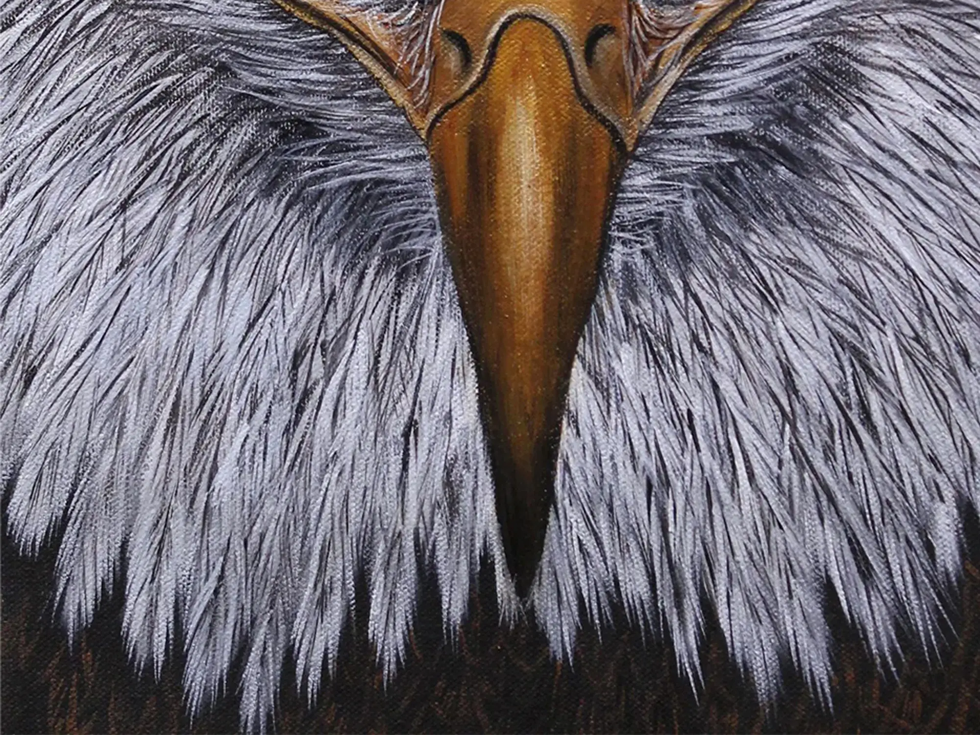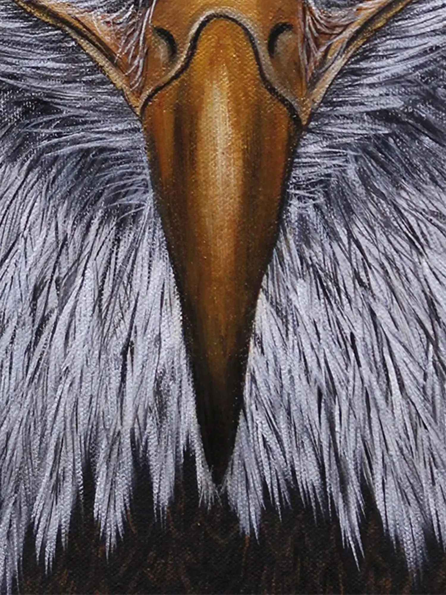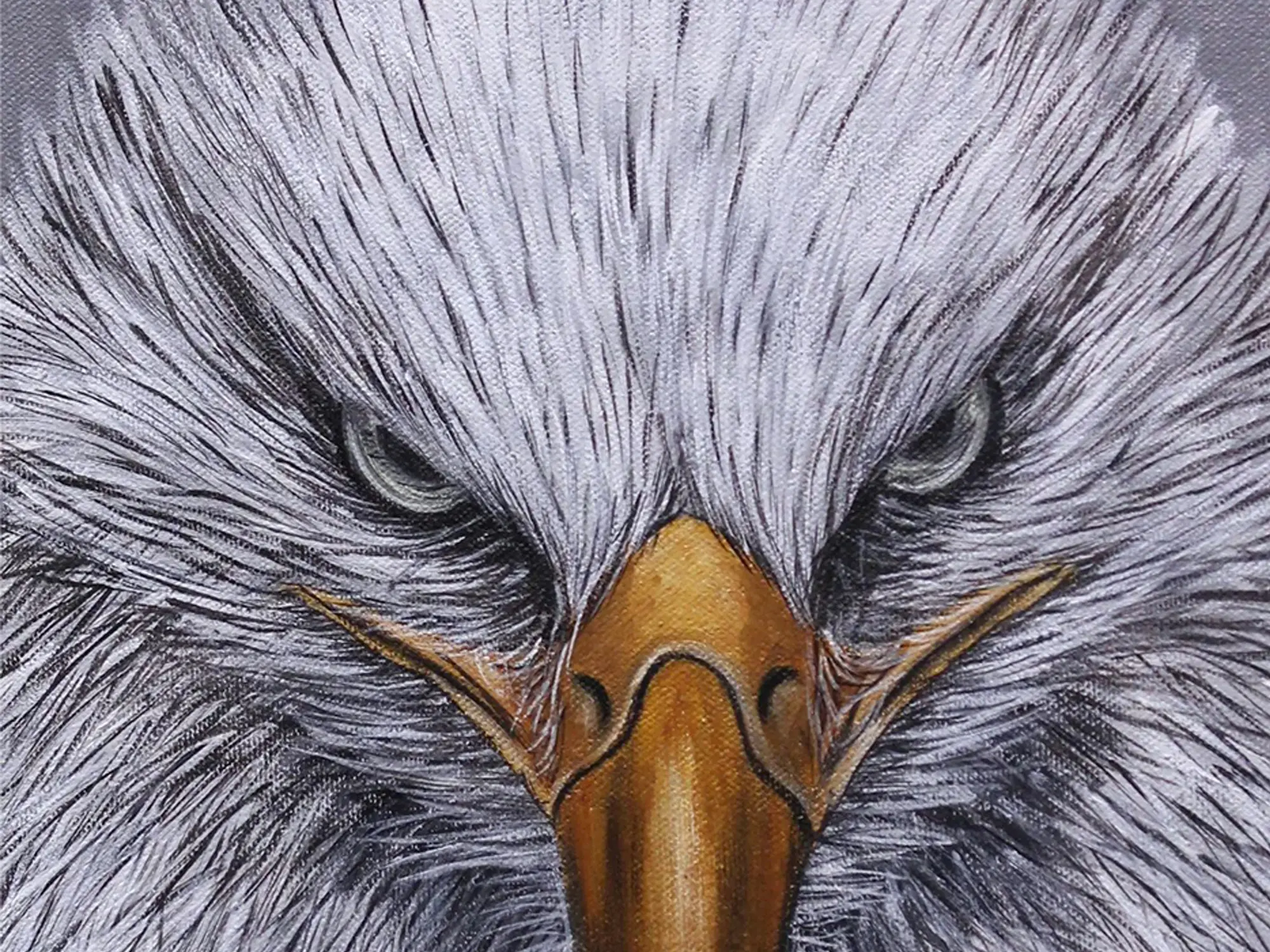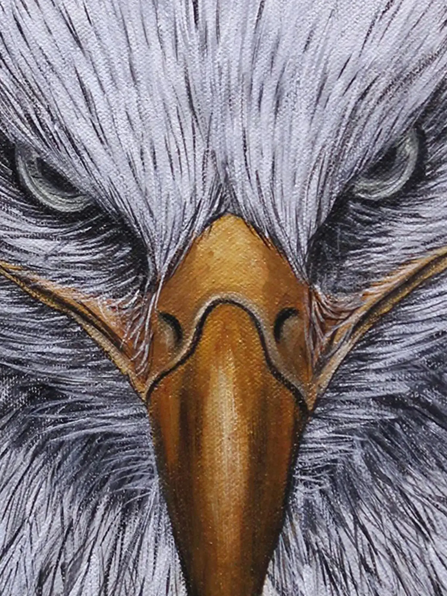 Observe the striking contrast between the soft, yet sharply defined, feathers and the formidable, golden beak. The cool, steely gaze of the subject draws you in, conveying a profound sense of alertness and intelligence. The composition, a close-up portrait, ensures every detail is pronounced, allowing you to marvel at the intricate rendering of each individual feather and the subtle glint in the eye. The dimensions, a balanced 16 inches in height by 12 inches in width, make it a versatile addition to any collection.