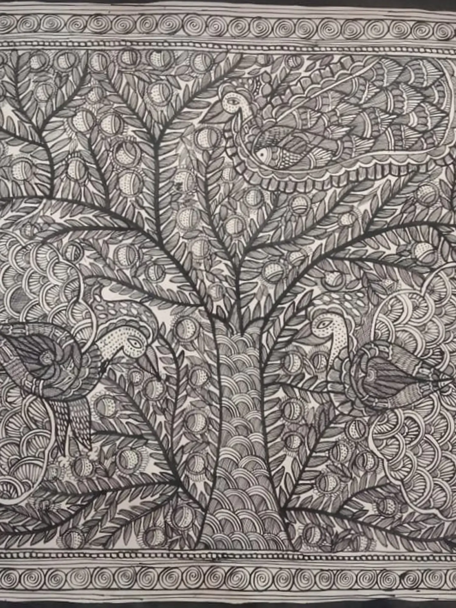 This style of painting often draws inspiration from the rich tapestry of Indian folklore and the profound connection to nature that permeates its ancient cultures. The tree symbolizes life, growth, and sustenance, a recurring motif in many spiritual and philosophical traditions. The presence of birds evokes freedom, harmony, and the interconnectedness of all living beings, inviting contemplation and a sense of peace.