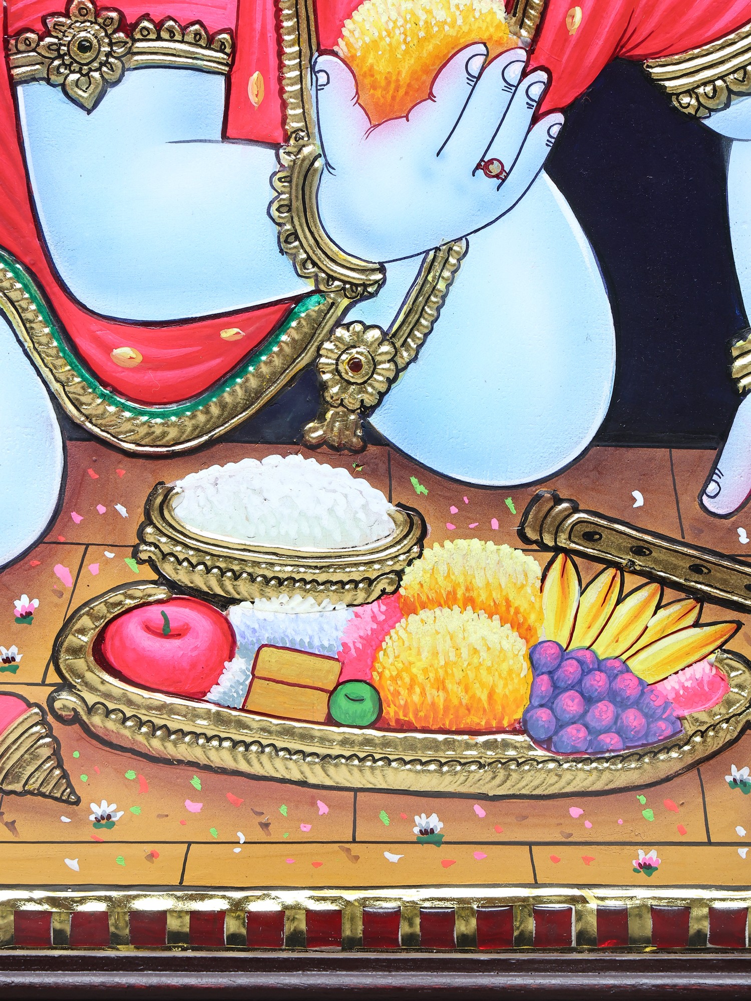 Navaneetha Krishna with Pot of Butter | Traditional Colors with 24 Karat Gold | Framed Tanjore Painting