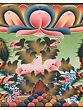 A Thangka is a traditional Tibetan Buddhist painting that usually depicts a Buddhist Deity (Buddha or Bodhisattva), a scene, or a mandala. These paintings are considered important paraphernalia in Buddhist rituals. They are used to teach the life of the Buddha, various lamas, and Bodhisattvas to the monastic students, and are also useful in visualizing the deity while meditating. One of the most important subjects of thangkas is the Bhavacakra (the wheel of life) which depicts the Art of Enlightenment. It is believed that Thangka paintings were developed over the centuries from the murals, of which only a few can be seen in the Ajanta caves in India and the Mogao caves in Gansu Province, Tibet.