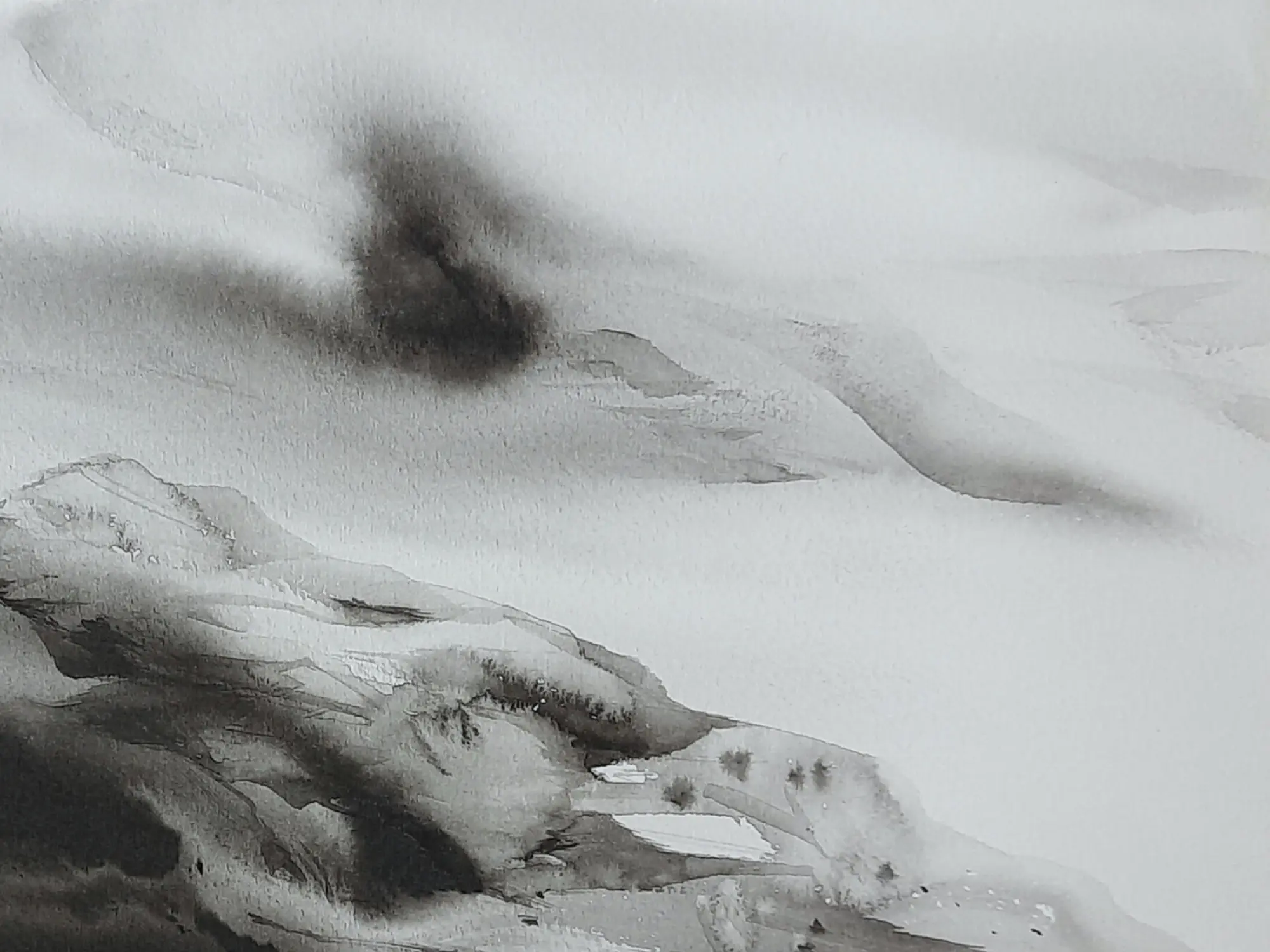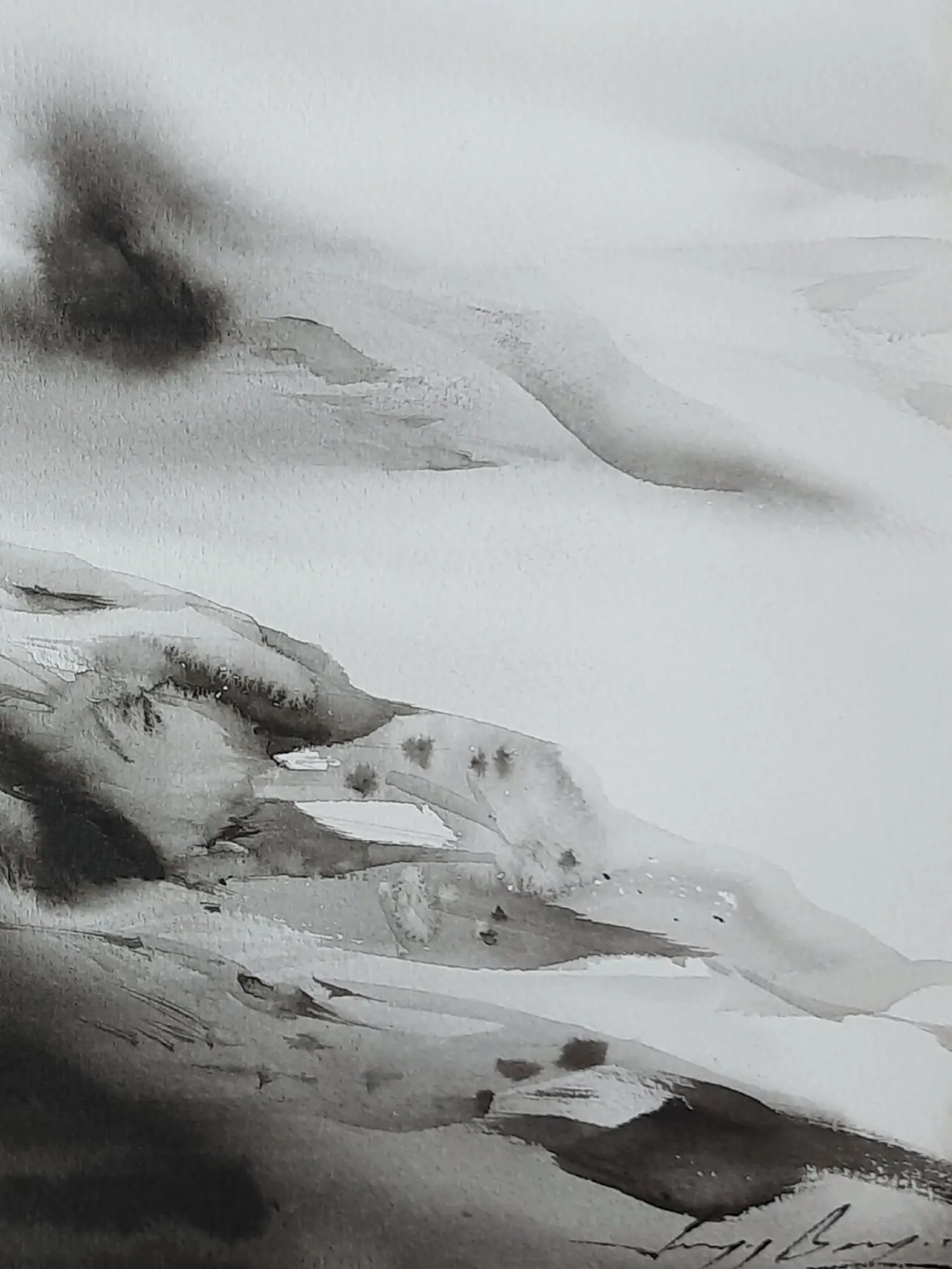 This painting is mainly based on the loose watercolor on a paper technique that indulges the beholder in the art of contemplation. There is also a smart use of blotting and Gesso Underpainting. Rough gesso (paint-mixing glue) brushstrokes add interest to the predictable texture of watercolor paper in this watercolor method. Watercolour, especially sedimentary colors, will settle into the tiny crevasses in the gesso brush strokes, creating a unique texture. This painting titled "Loneliness Painting" by Sanjoy Banerjee is a watercolor masterpiece, that captures the poignant essence of solitude. The painting's subtle hues and gentle strokes mirror the depths of isolation. The artwork invites viewers to understand the transformative power of embracing solitude, finding solace, and discovering strength within the quiet depths of self-awareness.