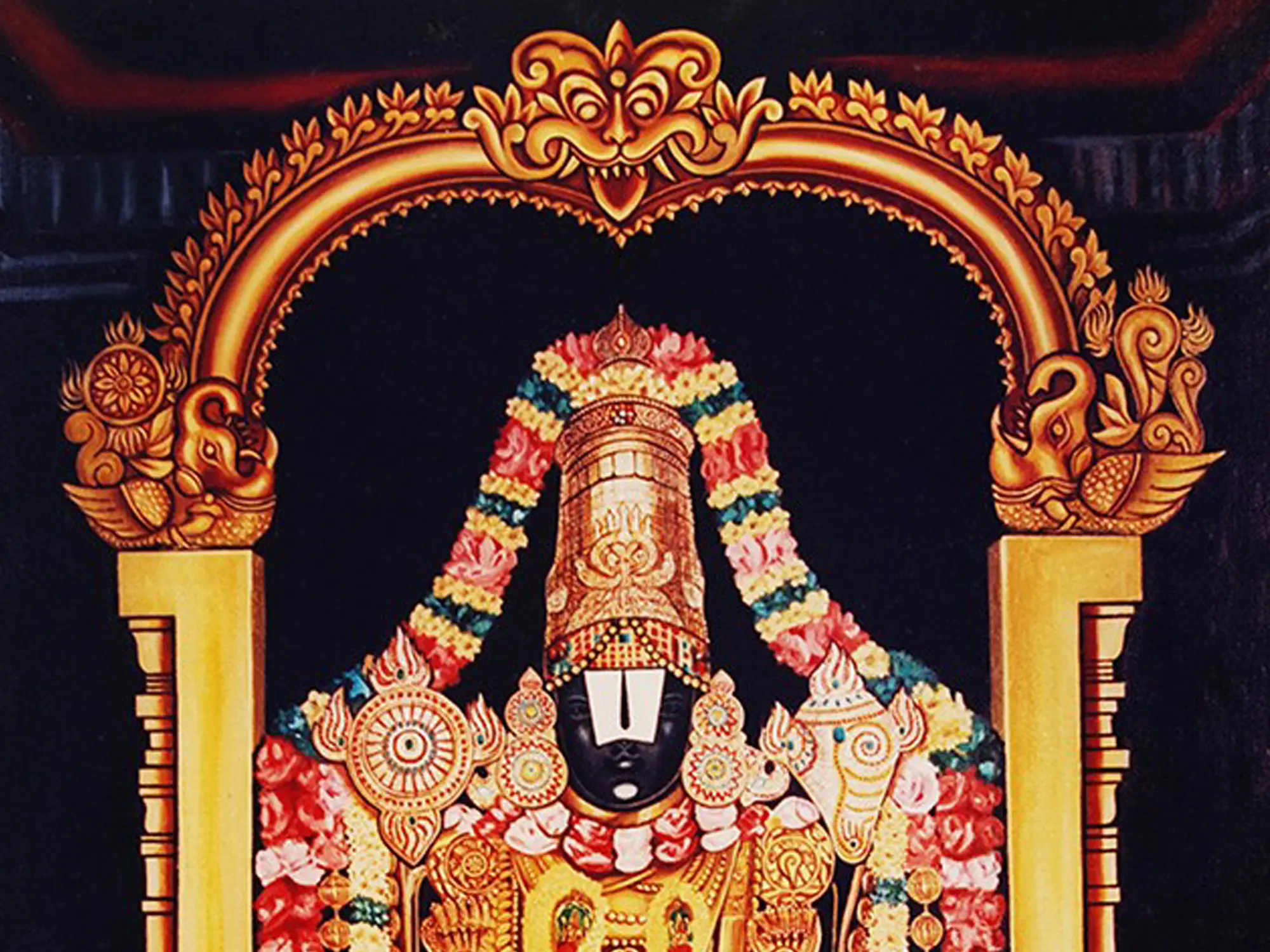 The painting magnificently captures the essence of Lord Balaji, also known as Venkateswara, one of the most revered deities in Hinduism. The artist skillfully brings the deity to life with meticulous attention to detail, portraying Lord Balaji with a serene countenance, adorned in traditional regalia and divine grace.