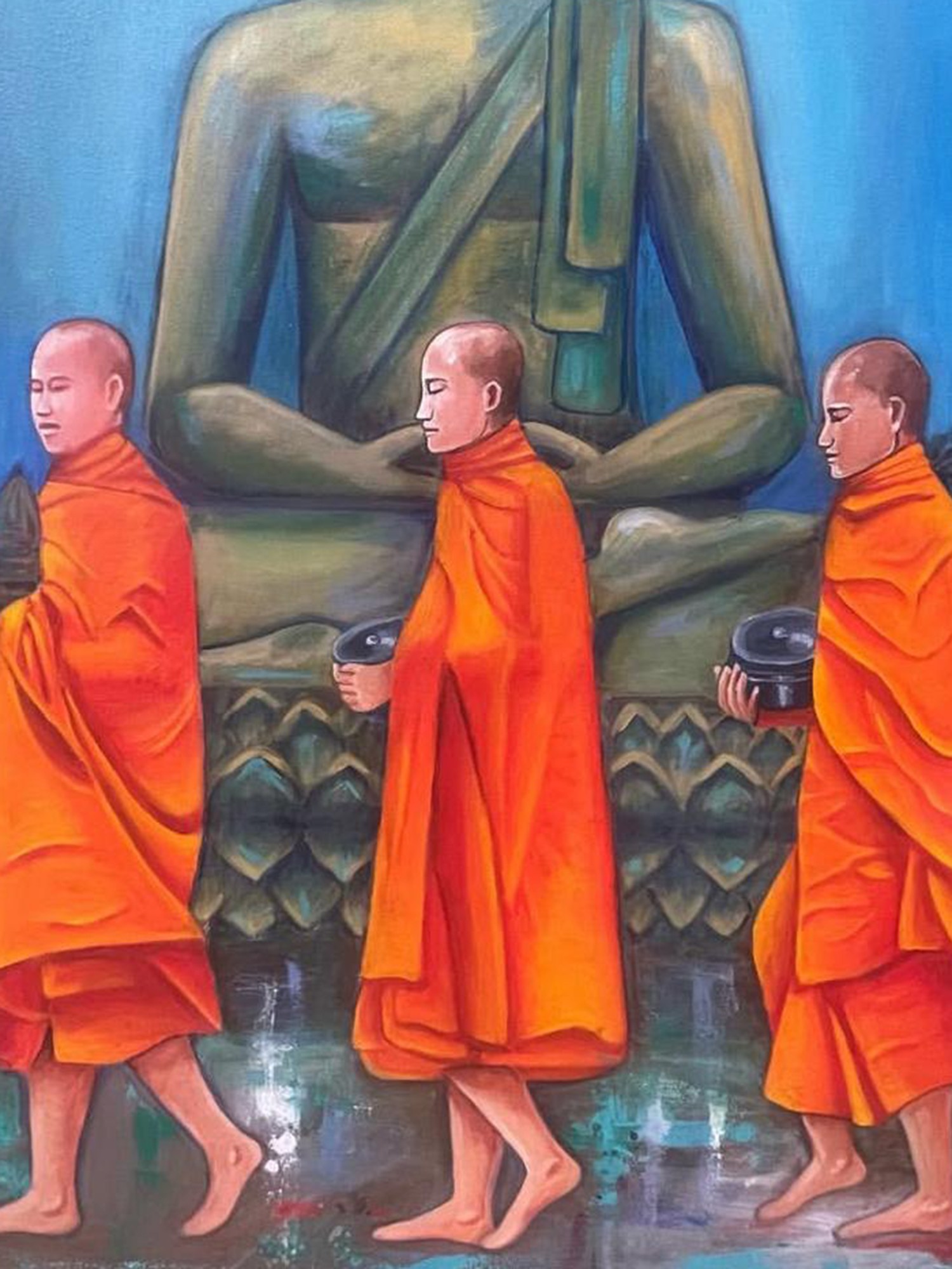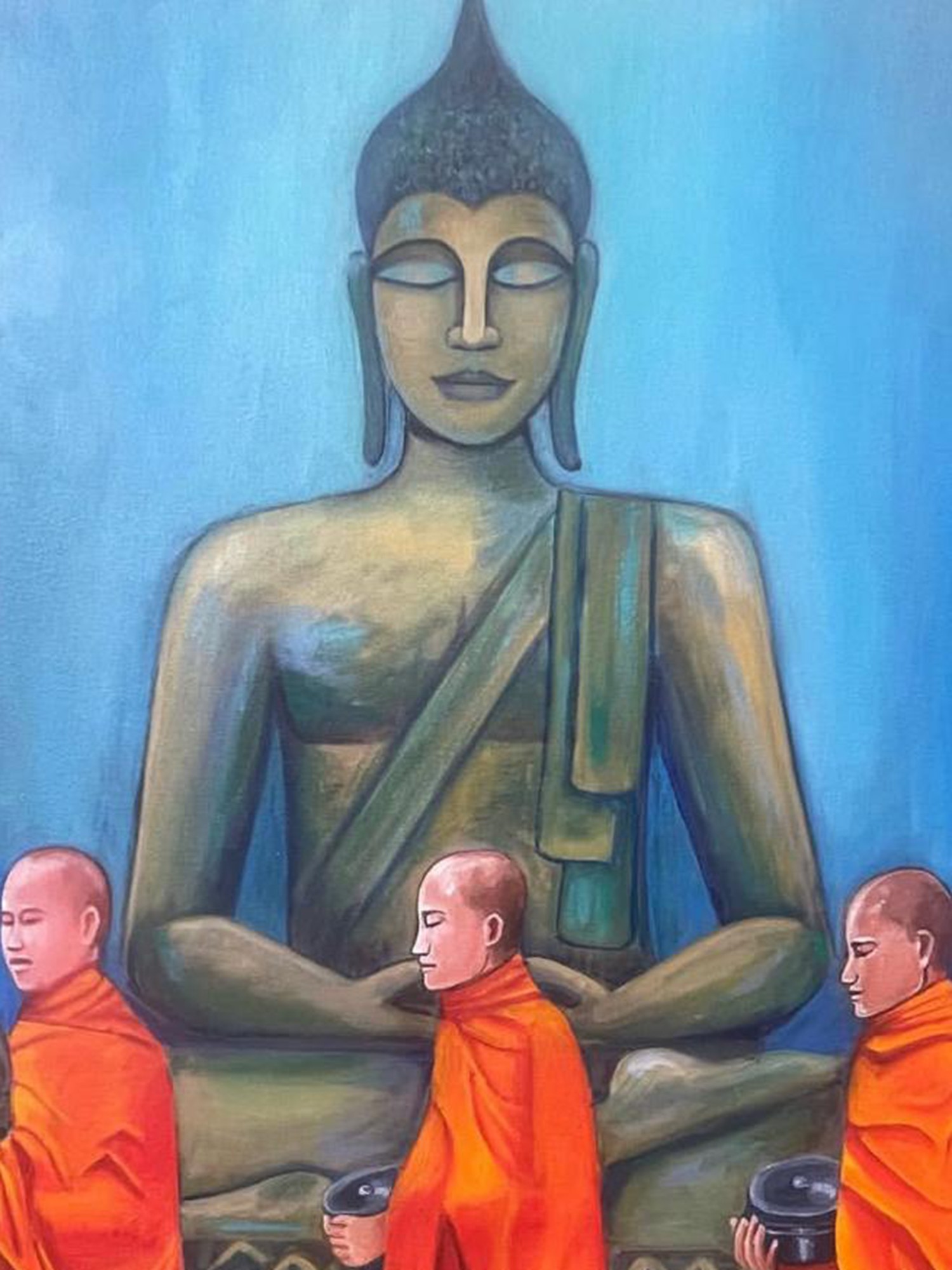 Lord Buddha and his Pupil | Acrylic on Canvas | Painting by Kangana Vohra