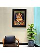20" Lamp with Vaishnava Symbols (Shankh, Chakra and Tilak) | Wood Framed Brass Sculpture