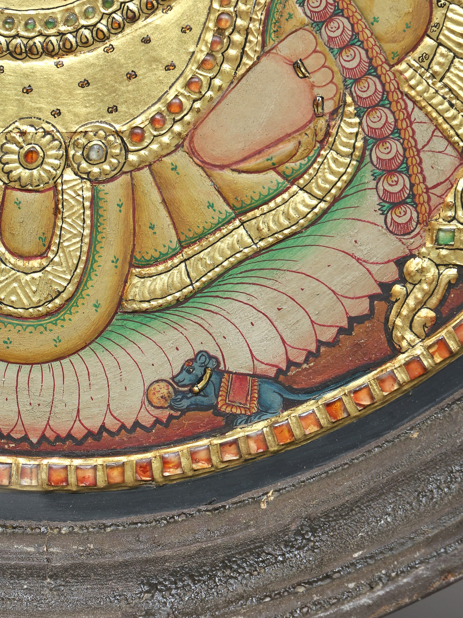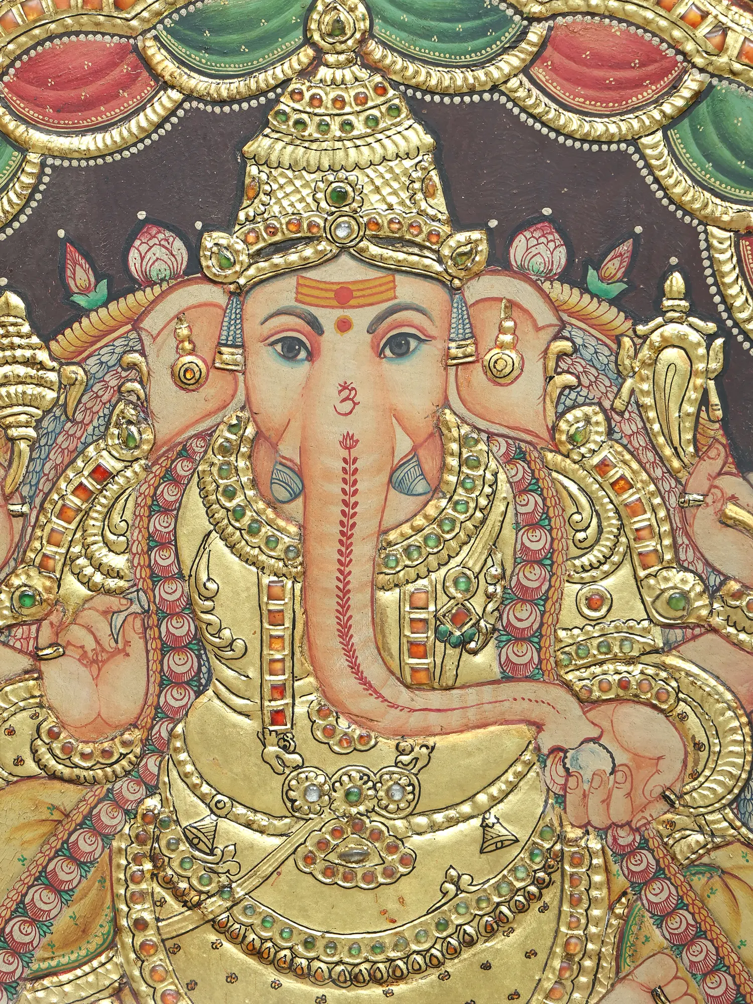 Lord Ganesha with Devi Lakshmi | 24 Karat Gold Work | Framed Tanjore Painting