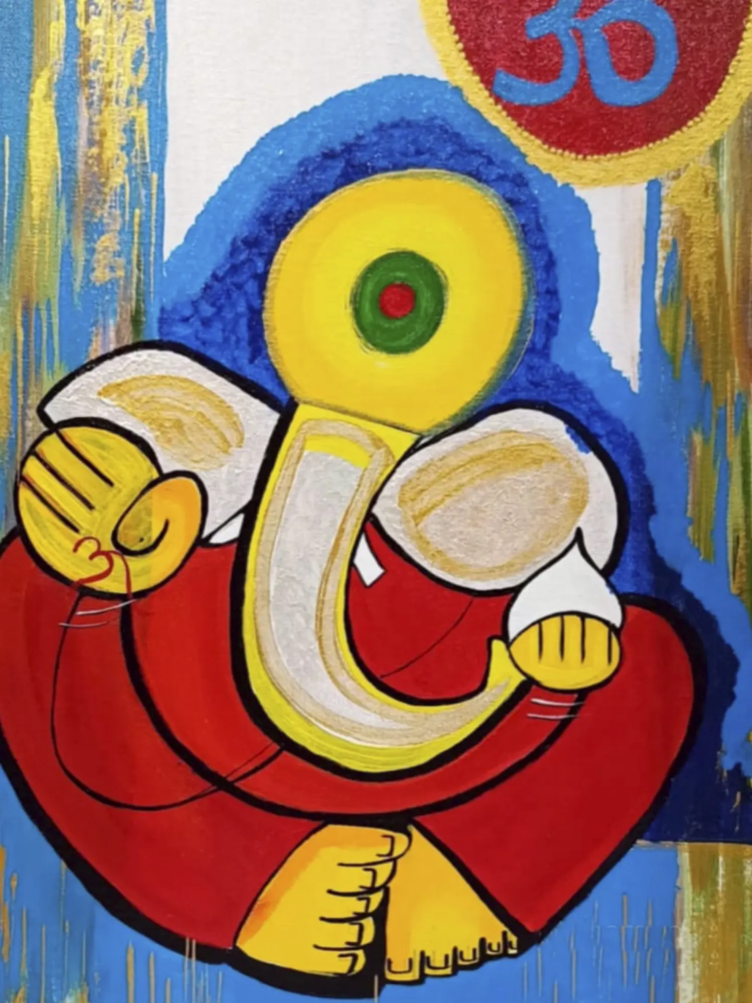 Invoke the blessings of Lord Ganesha with an abstract piece rendered in acrylic on canvas. Through bold strokes and vibrant colours, the artist captures the essence of Ganesha's divine presence, symbolising wisdom, prosperity, and new beginnings. This abstract interpretation transcends conventional portrayals, inviting contemplation and introspection into the multifaceted nature of the revered deity and the myriad paths to spiritual enlightenment.