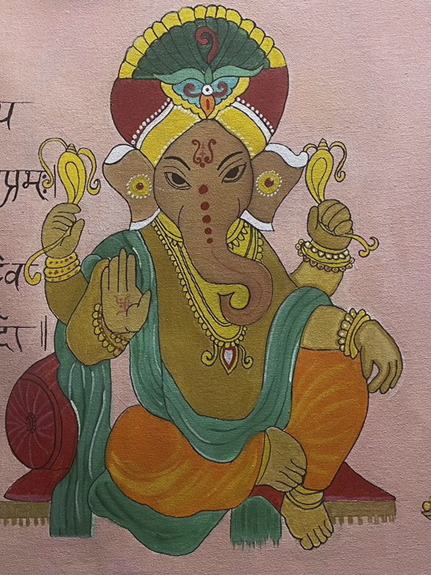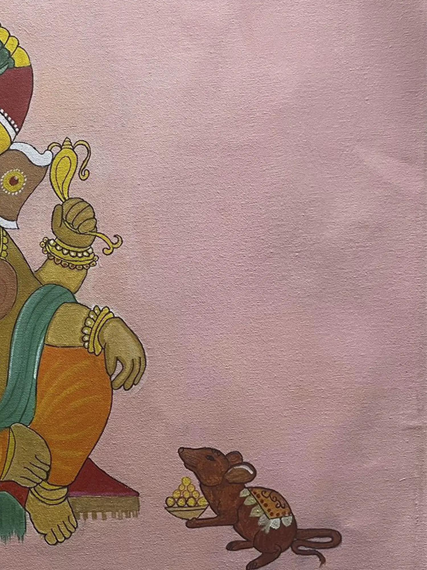 The artwork serves as a visual hymn, inspiring a deep connection to the divine. Through Upadhyay's skillful brushstrokes, the painting becomes a tangible expression of devotion, contributing significantly to the spiritual journey of those seeking solace and guidance from the benevolent Lord Ganesha.
