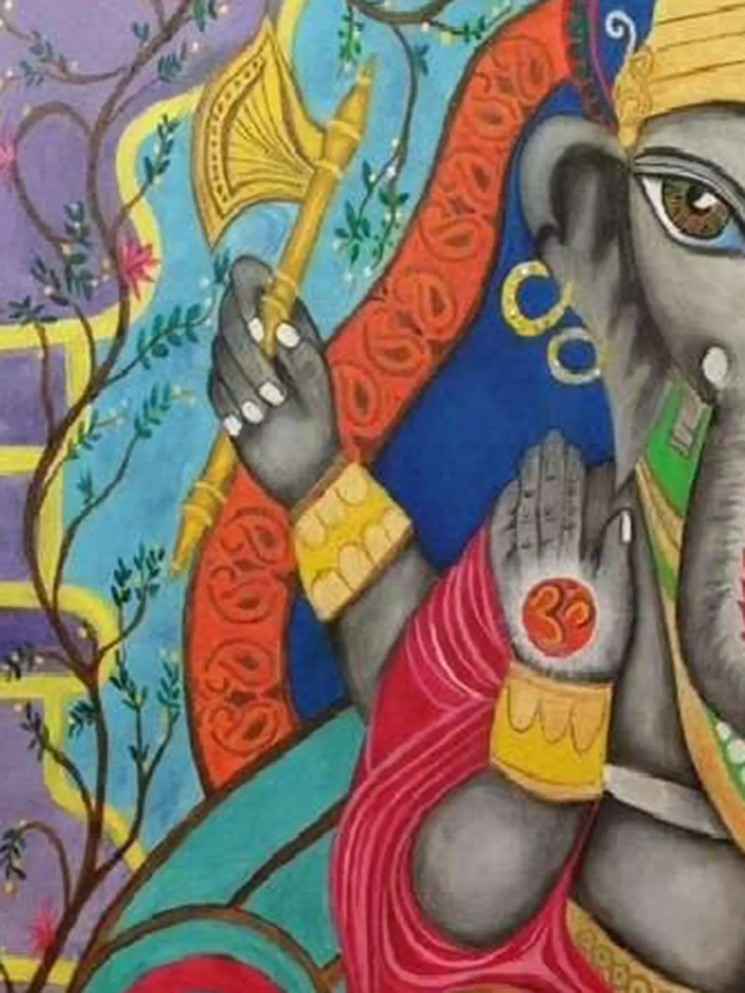 Chaturbhuj Lord Ganesha Painting | Acrylic on Canvas | Mithila Art | by Vidhi Joshi
