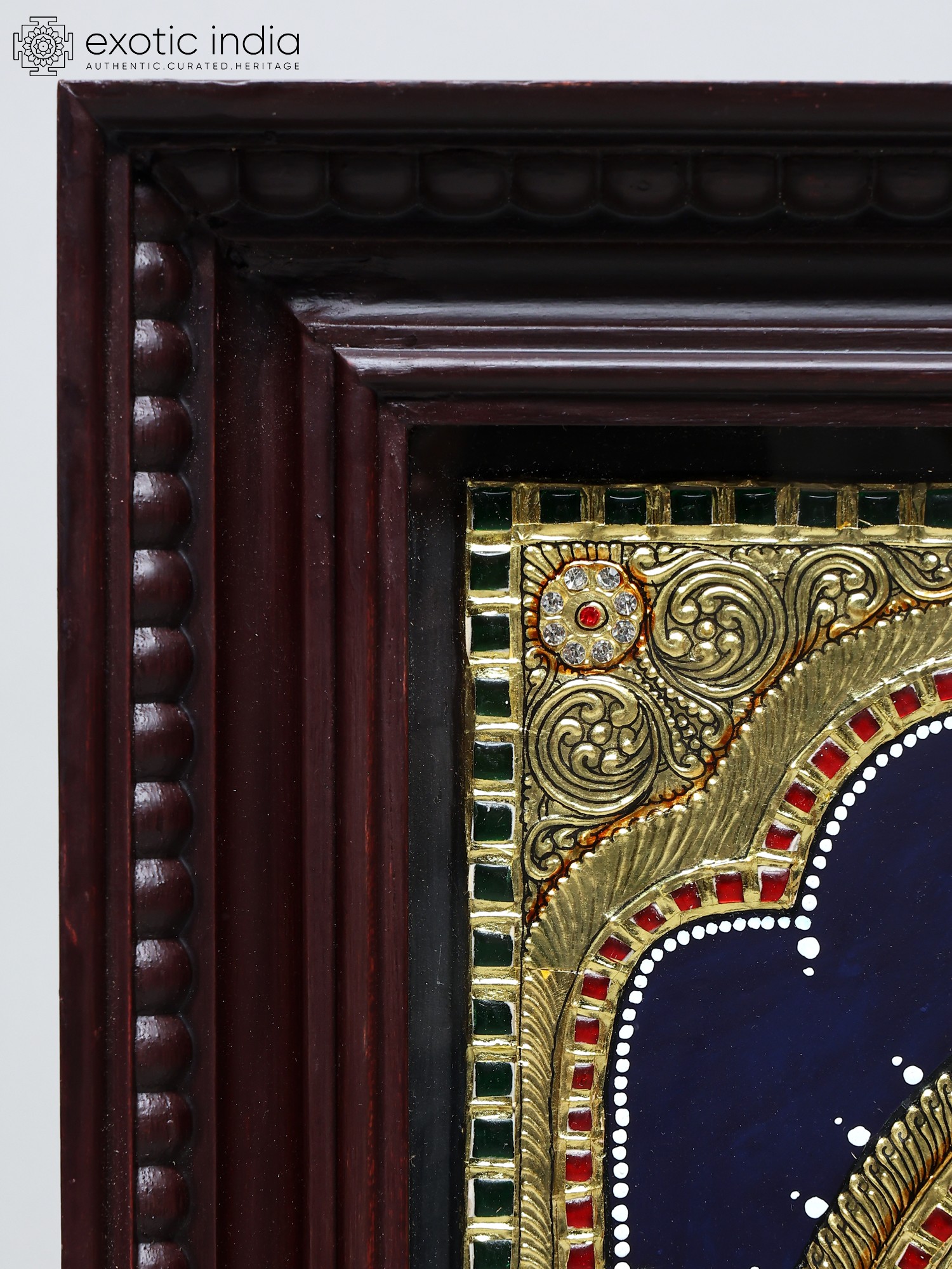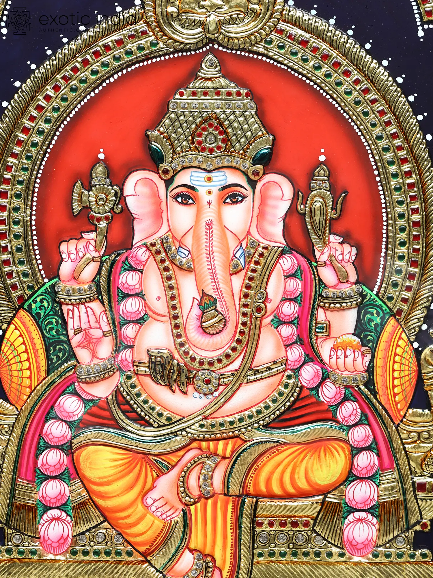 Lord Ganesha Seated on a Rat Tanjore Painting | Traditional Colors With 24K Gold | Teakwood Frame | Gold & Wood | Handmade | Made In India