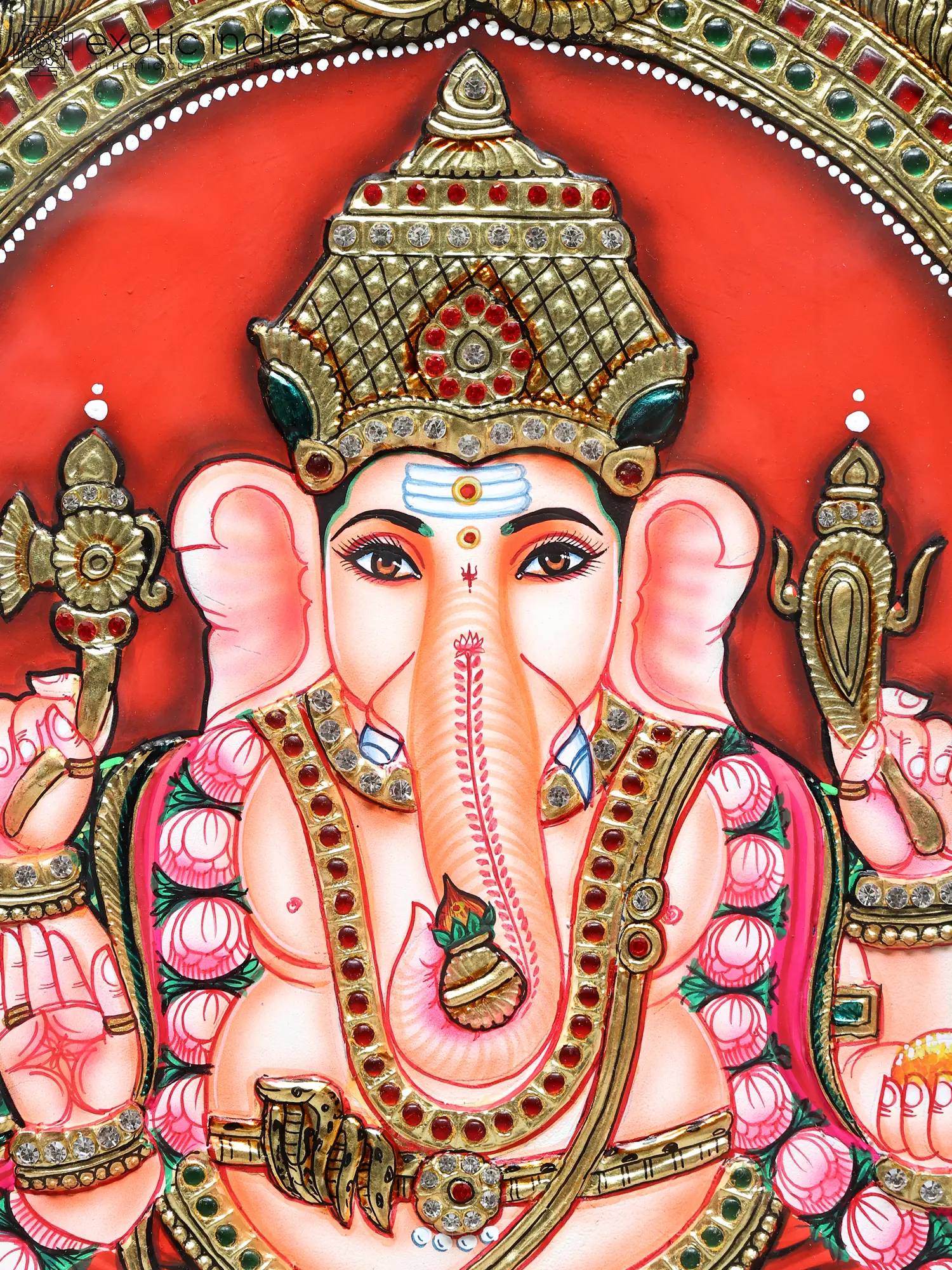 Dancing Lord Ganesha Tanjore Painting | Traditional Colors with 24K Gold