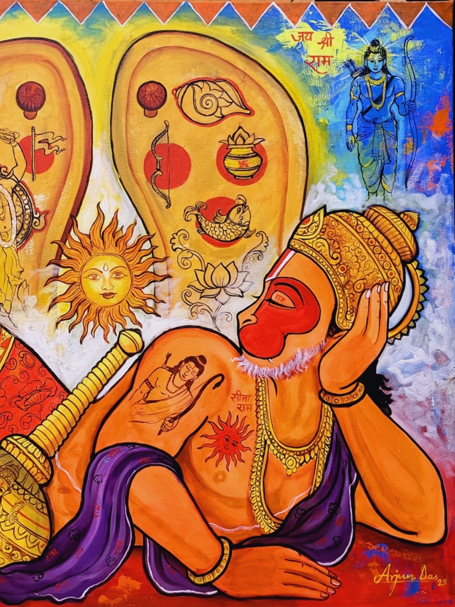 Lord Hanuman Painting - Protector of the Devotee | Acrylic on Canvas | by Arjun Das