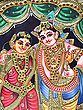 Standing Lord Krishna & Rukmini Tanjore Painting | Traditional Colors with 24 Karat Gold | With Frame