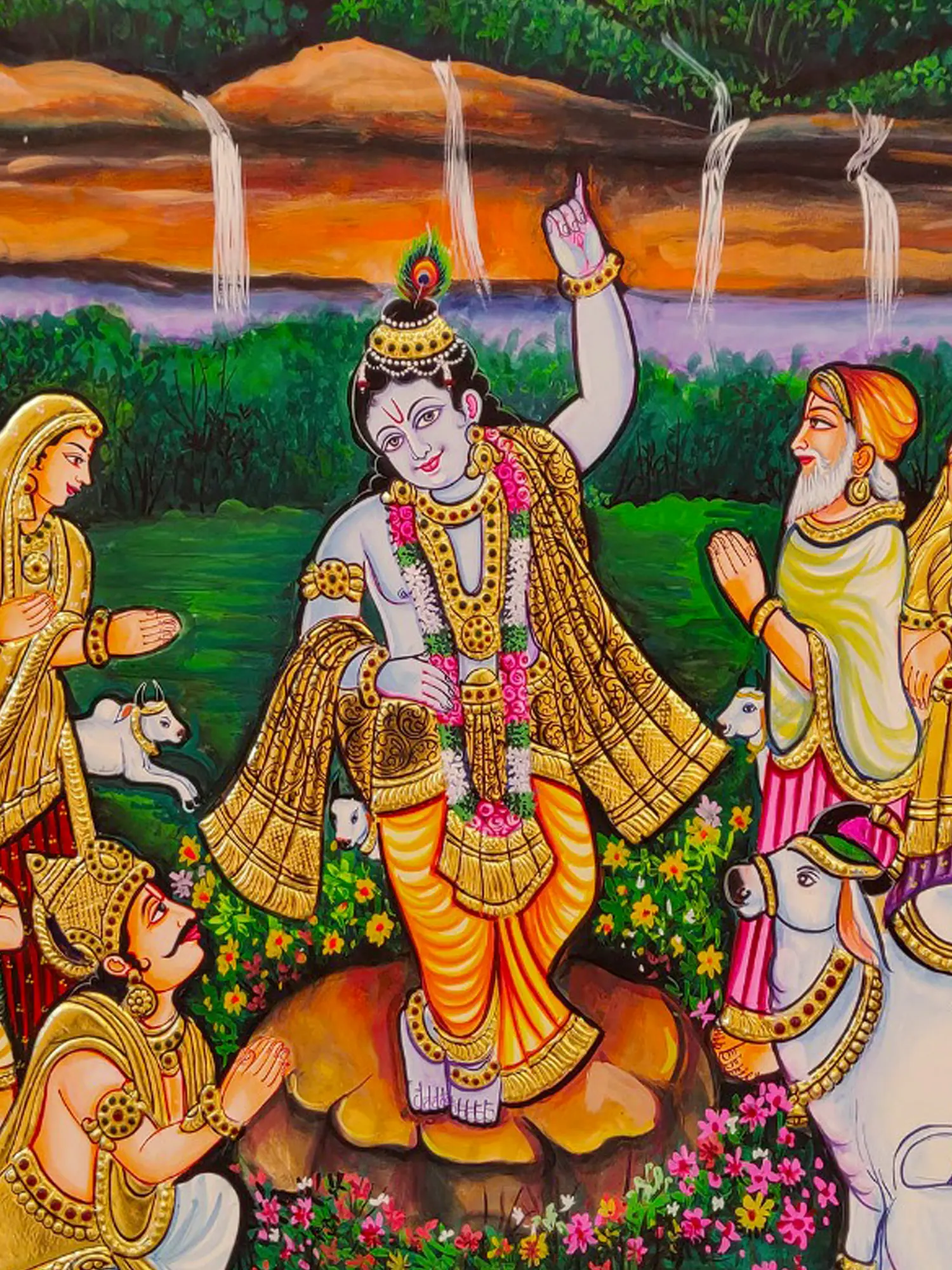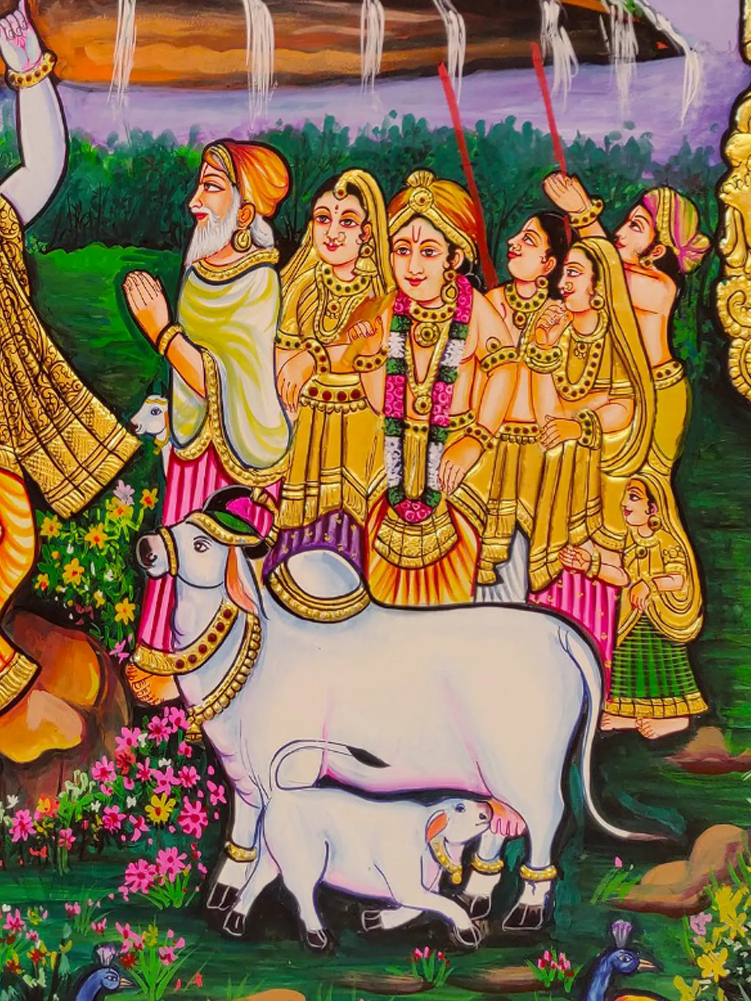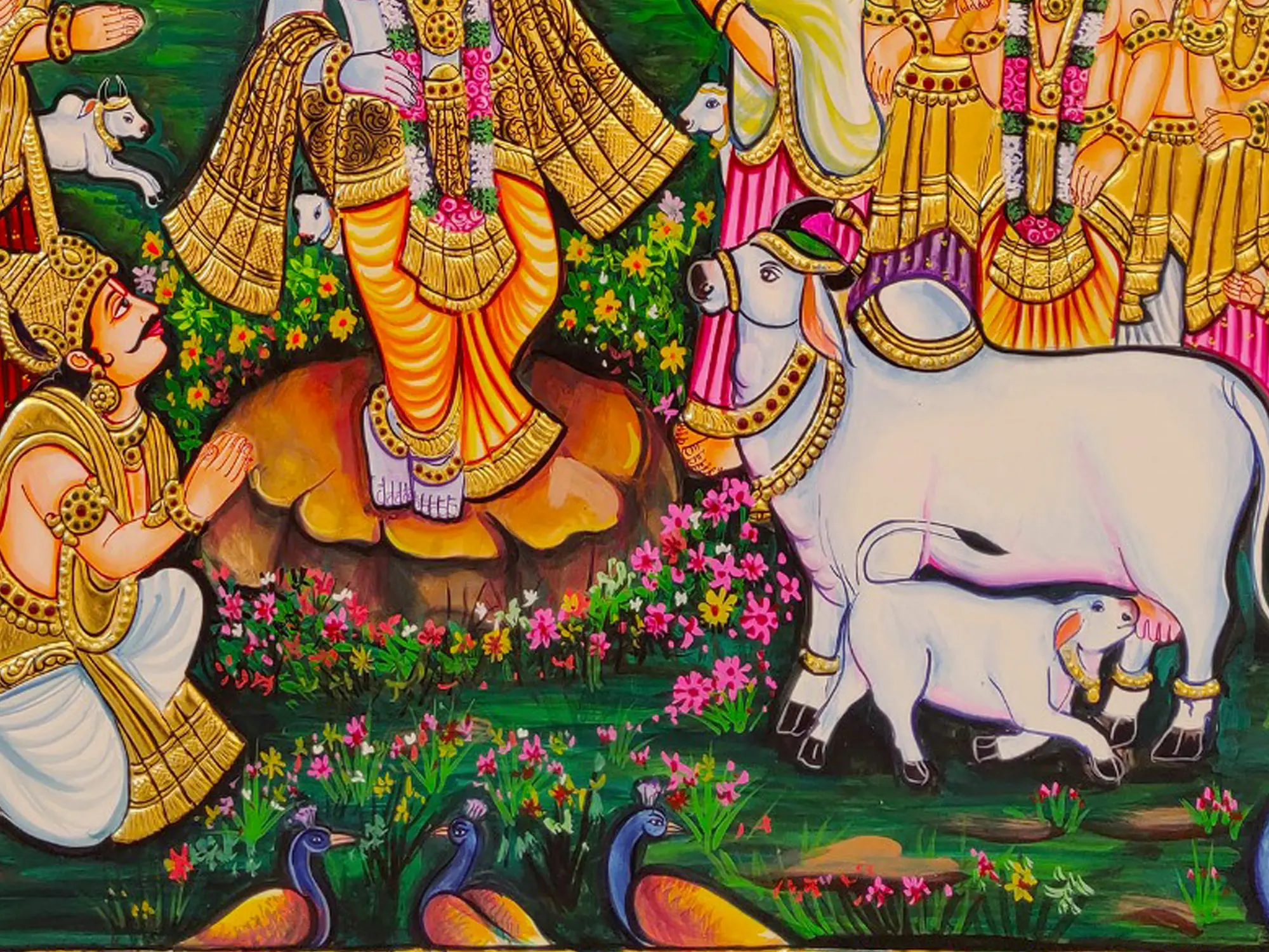 Krishna’s Melody : Cow And Lotus | Acrylic On Canvas | By Arjun Das