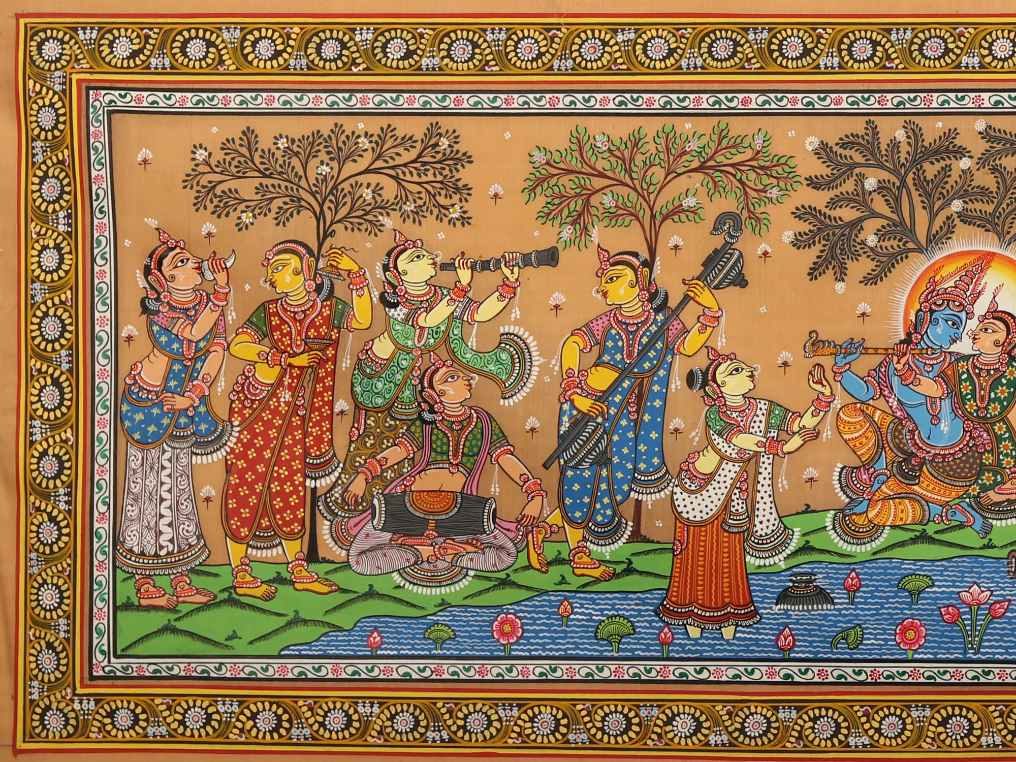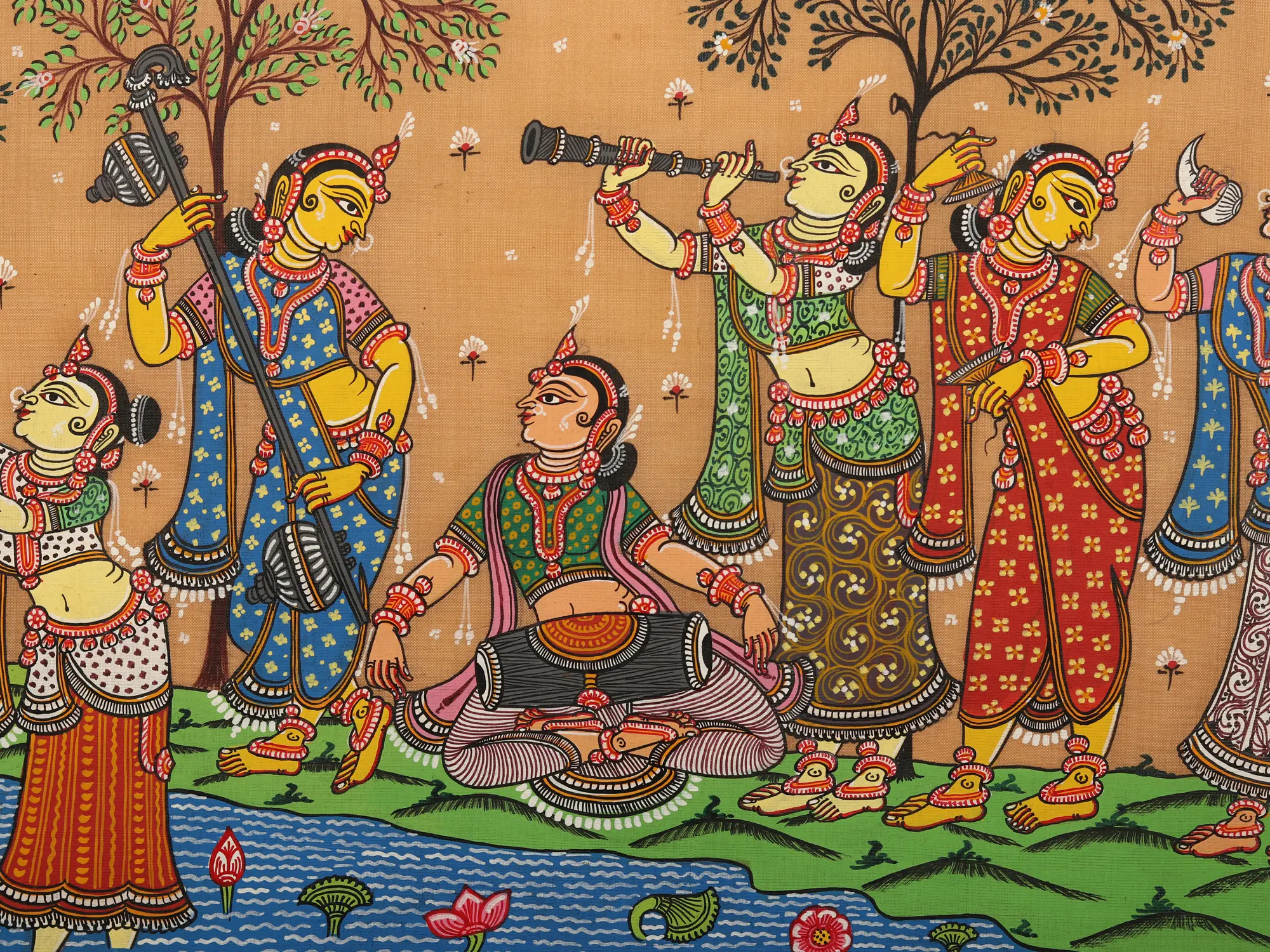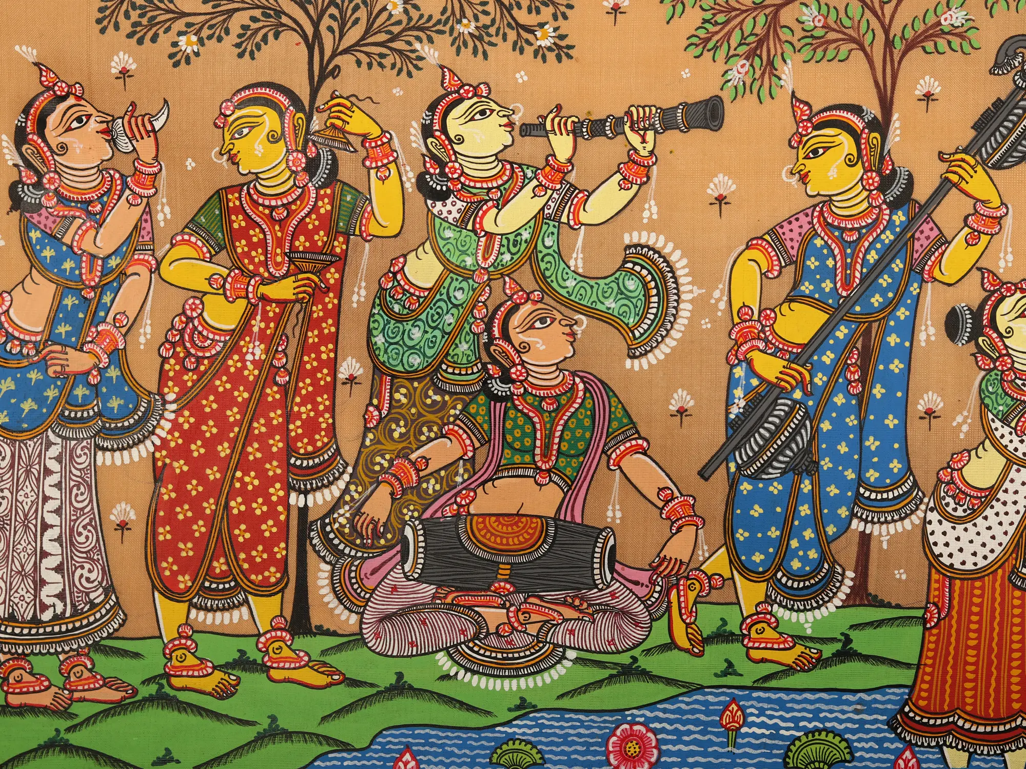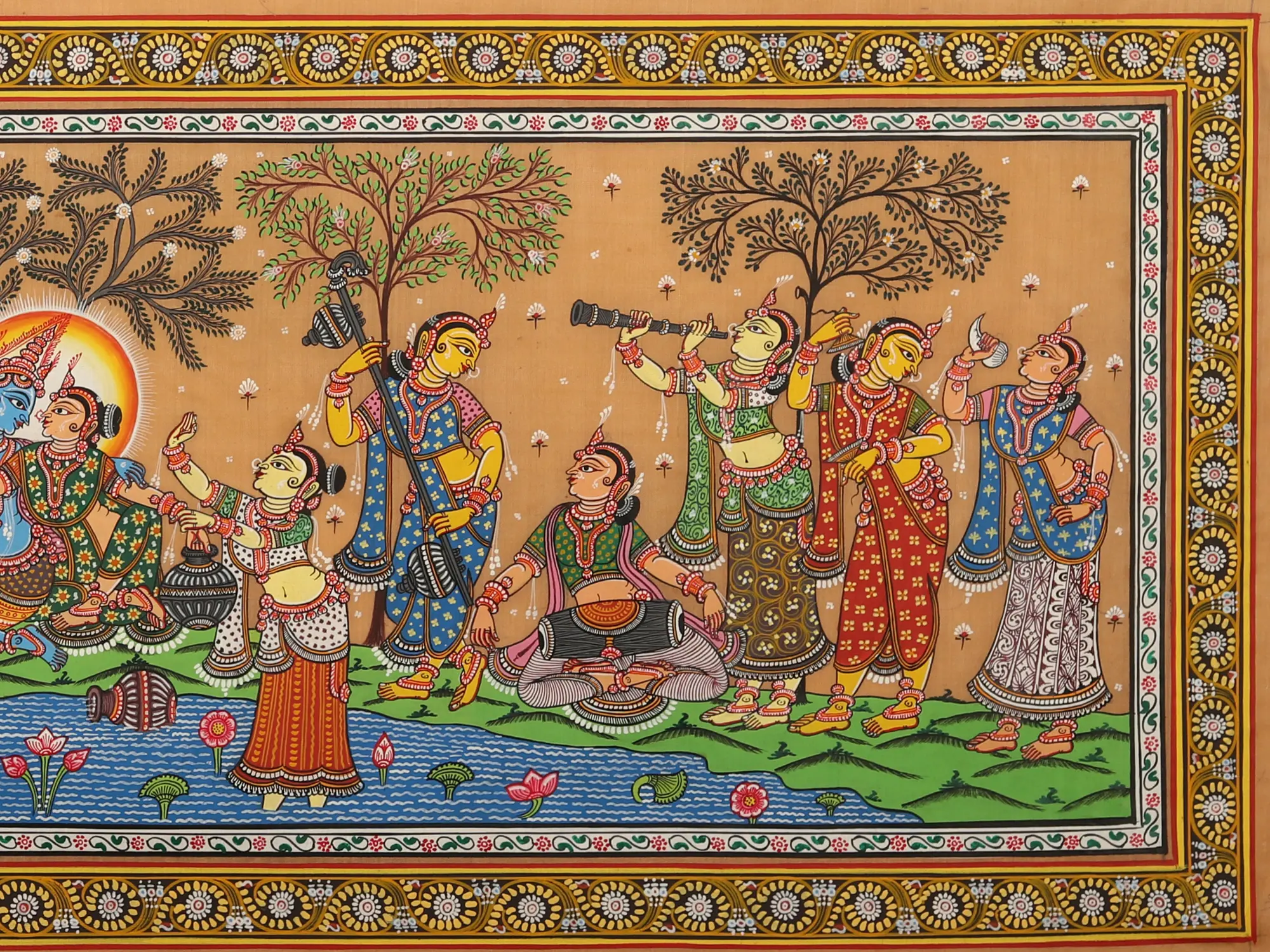 Lord Krishna with Gopikas - Celebration View of Vrindavan | Pattachitra Painting From Odisha