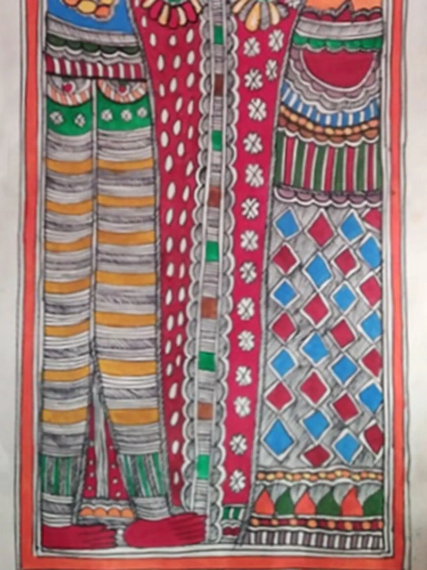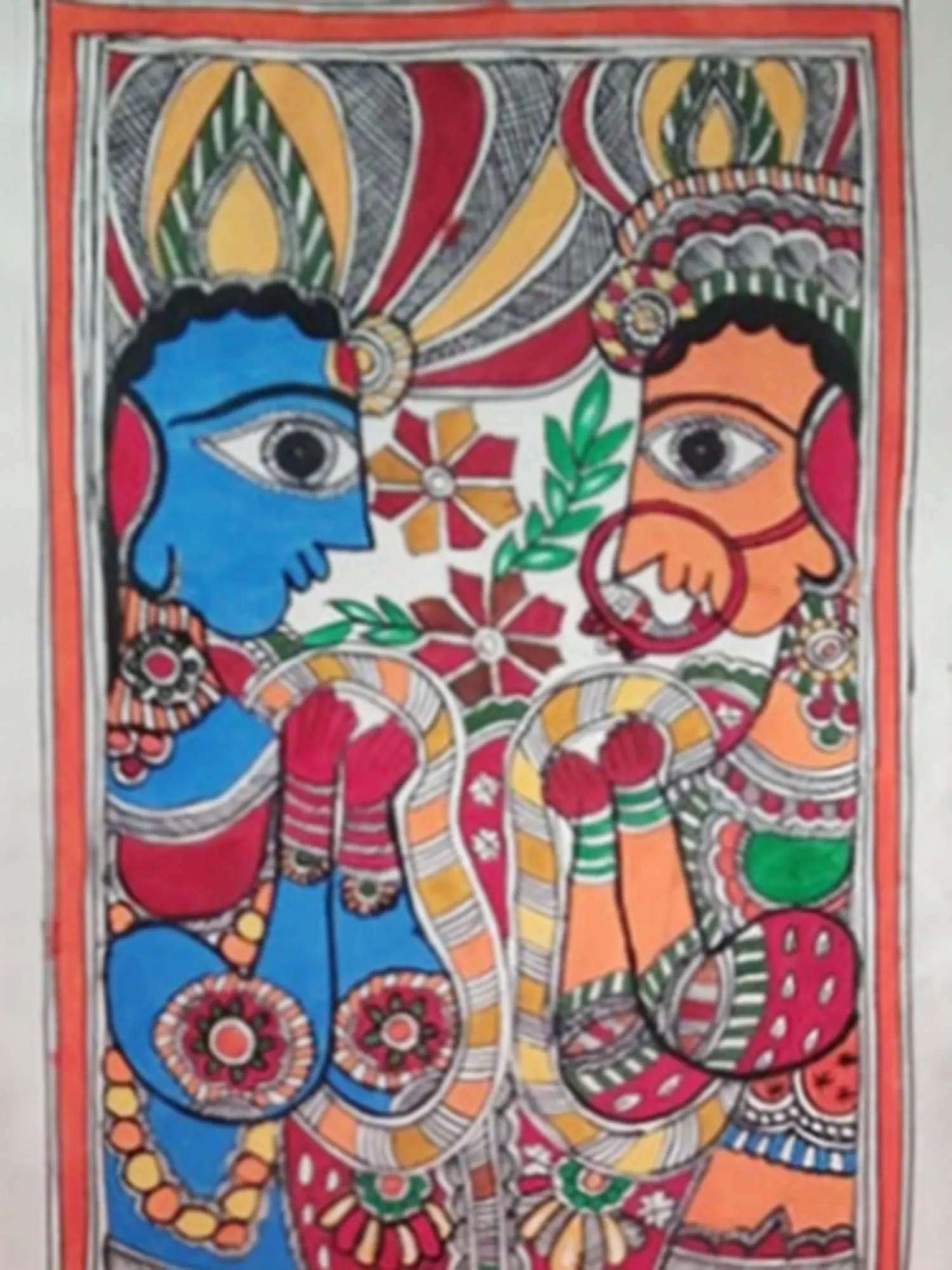 The artwork becomes a visual hymn, capturing the essence of the legendary Swayamvar ceremony. Through the traditional Madhubani style, Archana Jha's painting not only preserves the cultural heritage of the narrative but also serves as a timeless homage to the eternal bond between Lord Rama and Sita.