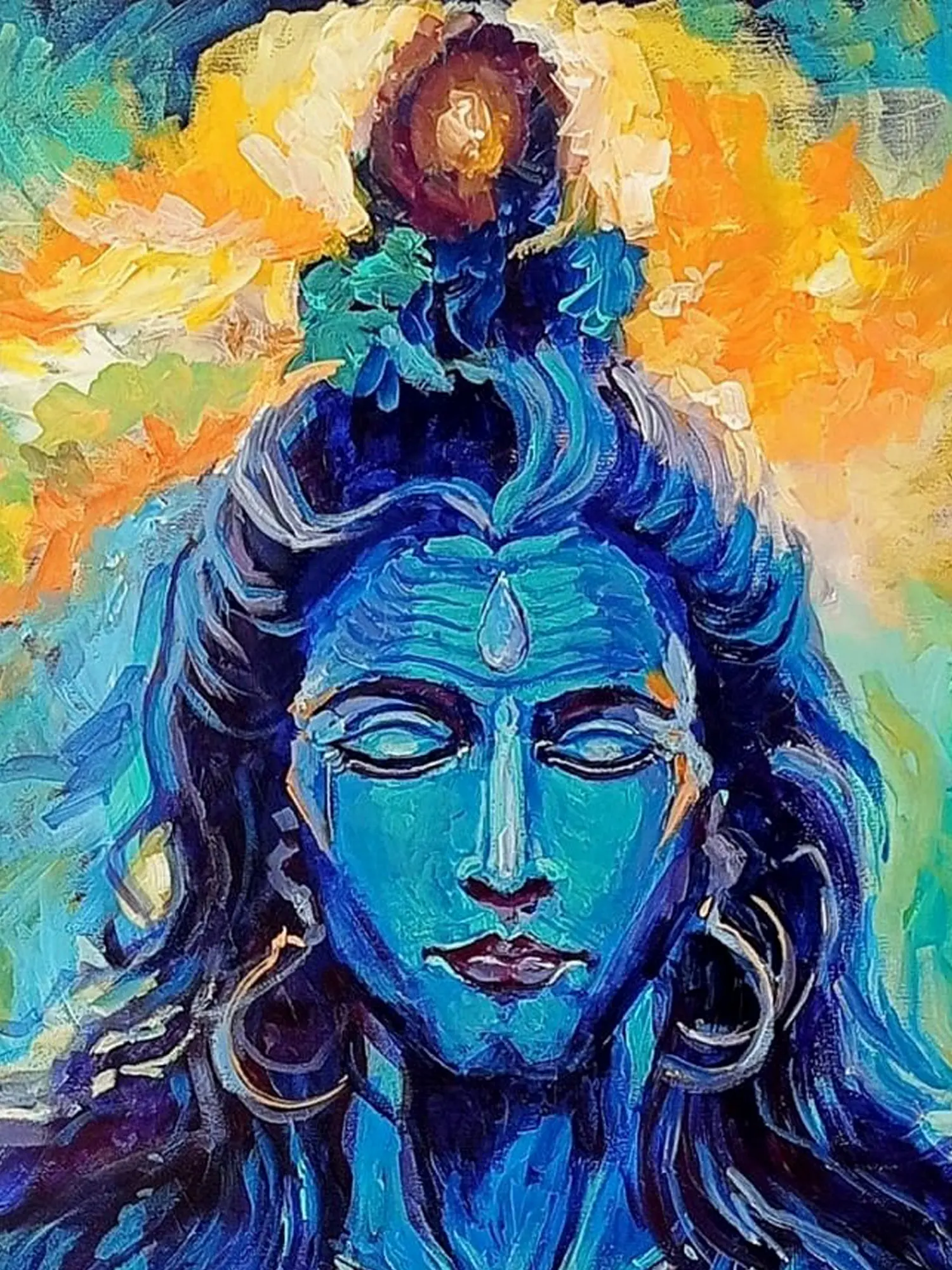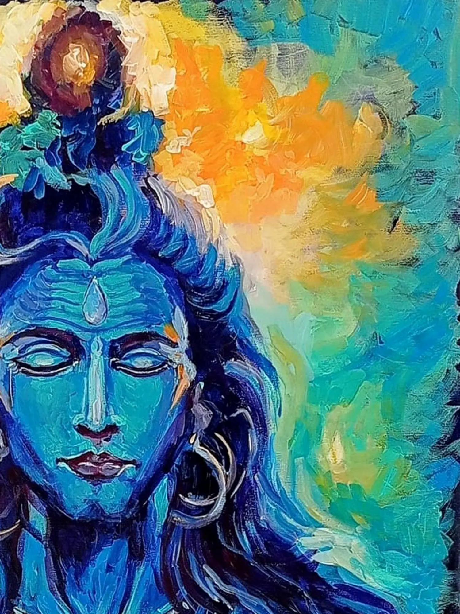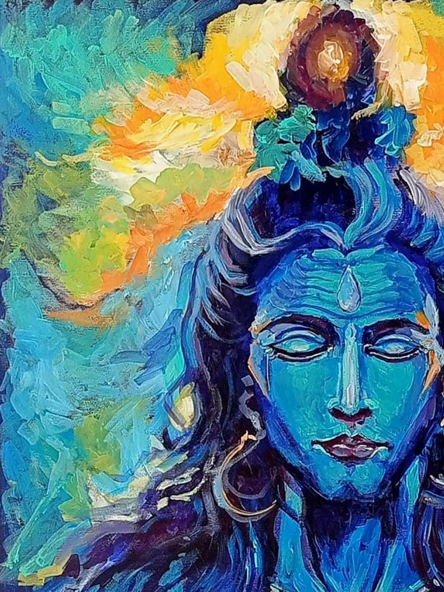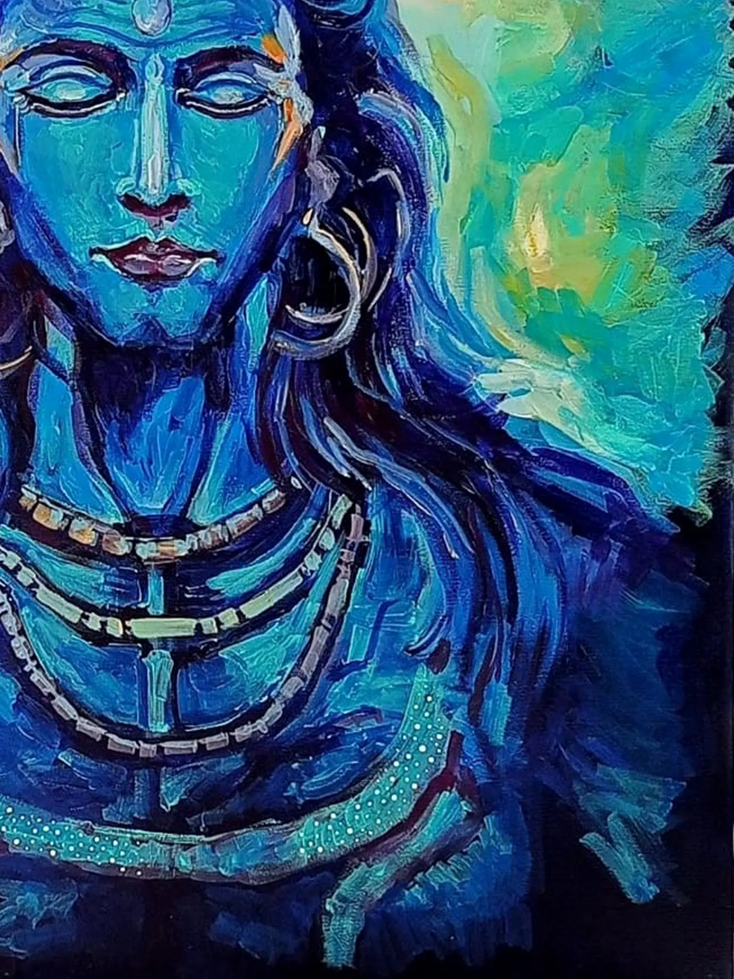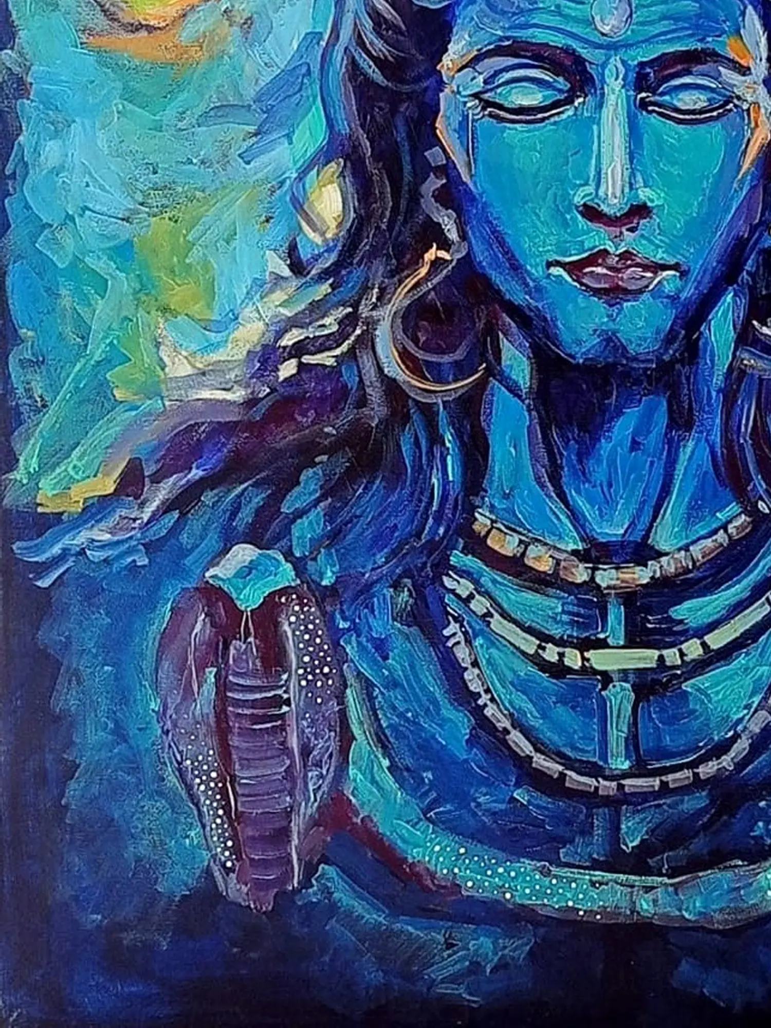 This artwork draws inspiration from the revered deity, a figure symbolizing destruction and transformation, renewal and meditation. The choice of color and abstract form reflects the multifaceted nature of this divine being, offering a modern interpretation rooted in ancient symbolism. It speaks to the universal themes of spiritual awakening and cosmic balance.