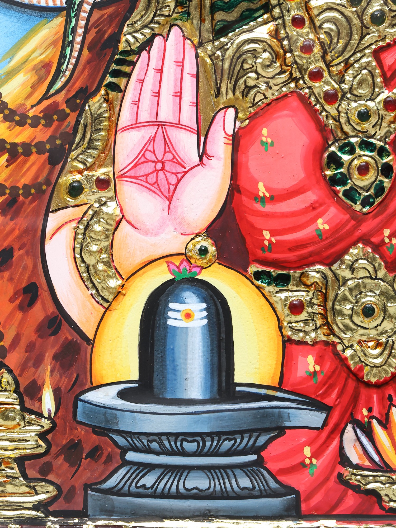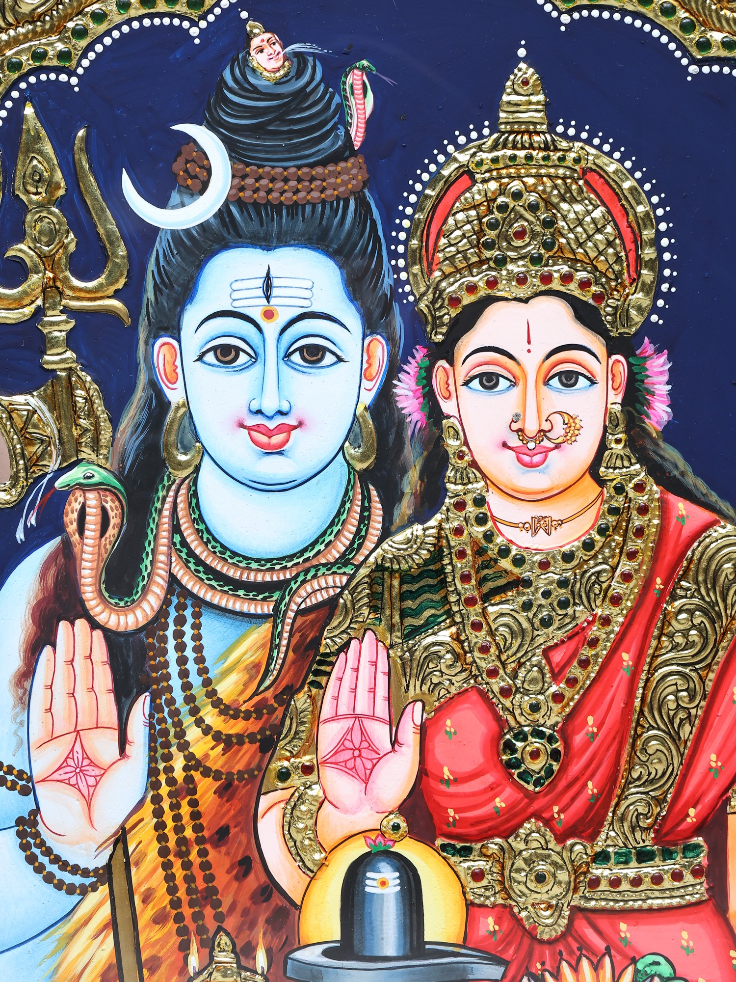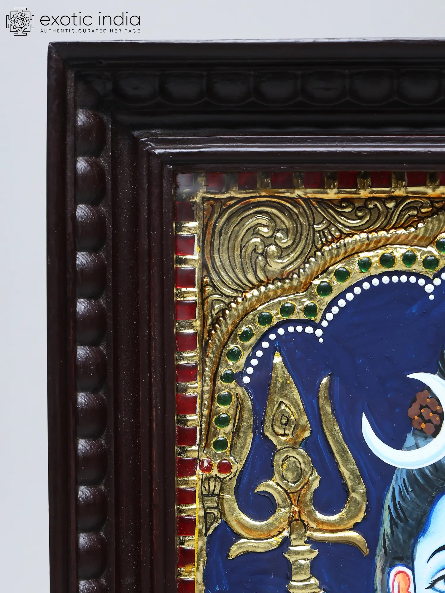 Lord Shiva with Parvati Seated on Nandi Tanjore Painting | Traditional Colors with 24K Gold | Teakwood Frame | Handmade | Made in India