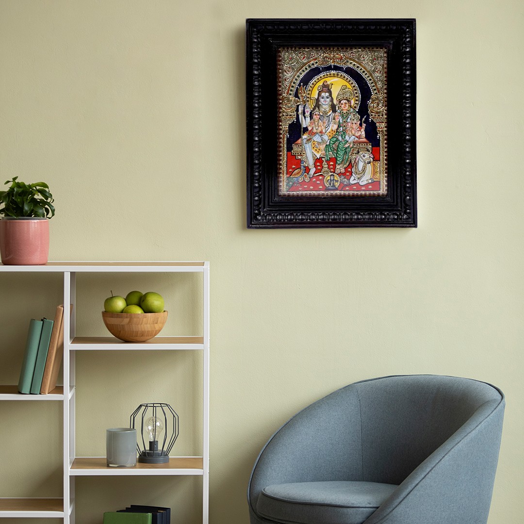 Lord Shiva Family Framed Tanjore Painting | 24 Karat Gold Work