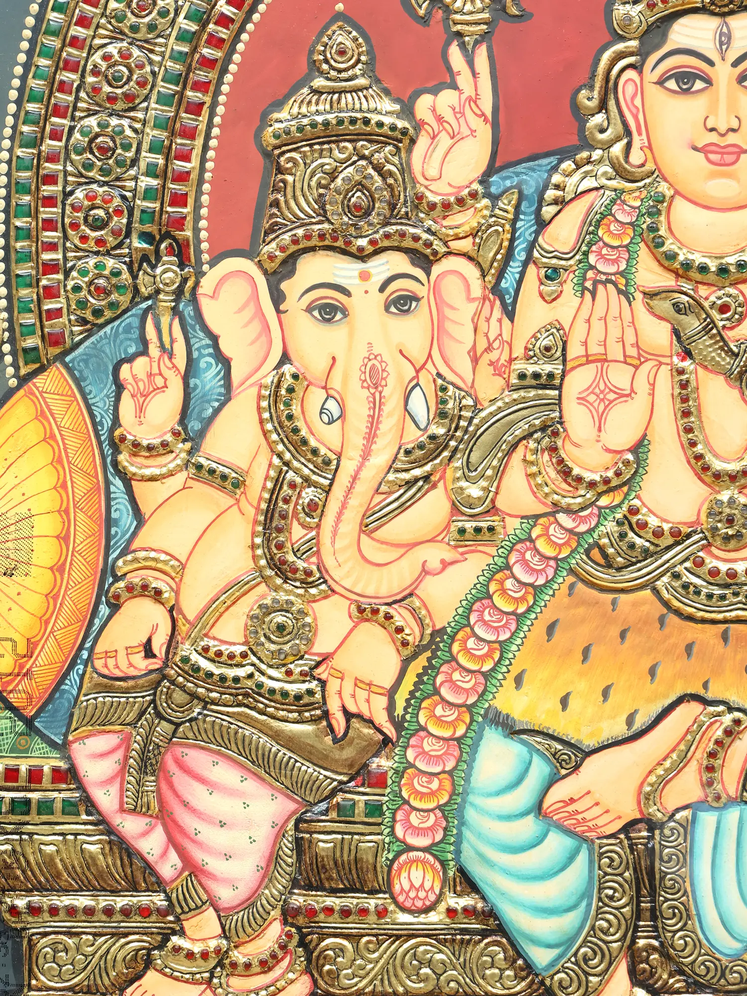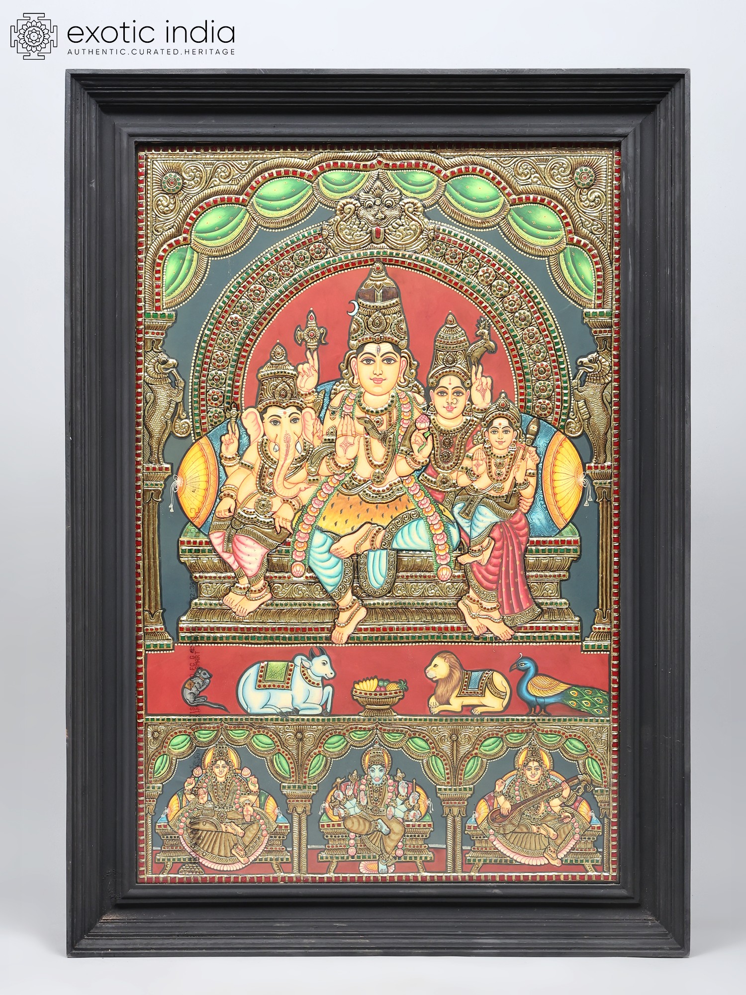 18" Shiva Family Framed Tanjore Painting | 24 Karat Gold Work