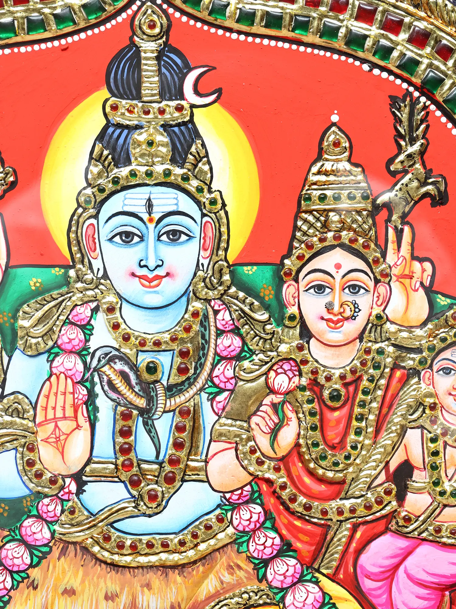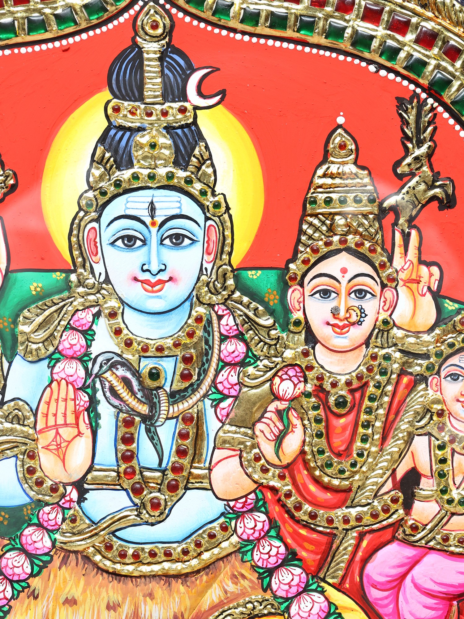 Lord Shiva Family Tanjore Painting | Traditional Colors with Gold Work