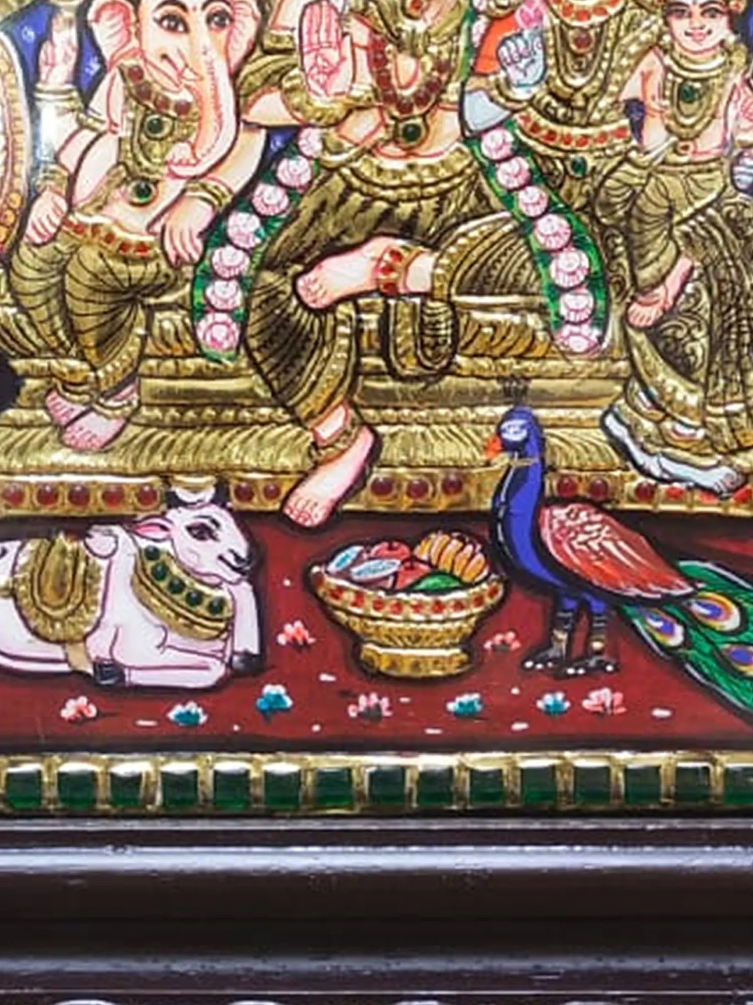 This painting, when placed at home, becomes a sacred embodiment of love, protection, and auspiciousness. It invites positive energies, fostering a serene ambiance. The presence of Lord Shiva's divine family is believed to bring blessings, prosperity, and spiritual harmony to the household. It not only serves as a beautiful artistic piece but also as a source of divine inspiration and a symbol of cosmic balance within the sacred space of one's home.