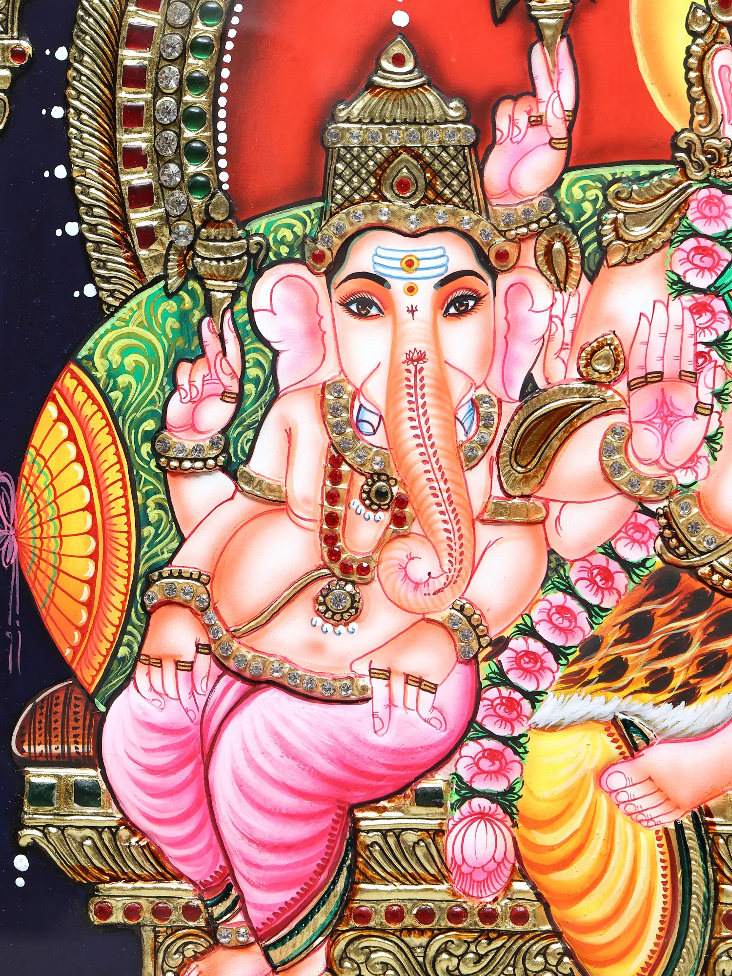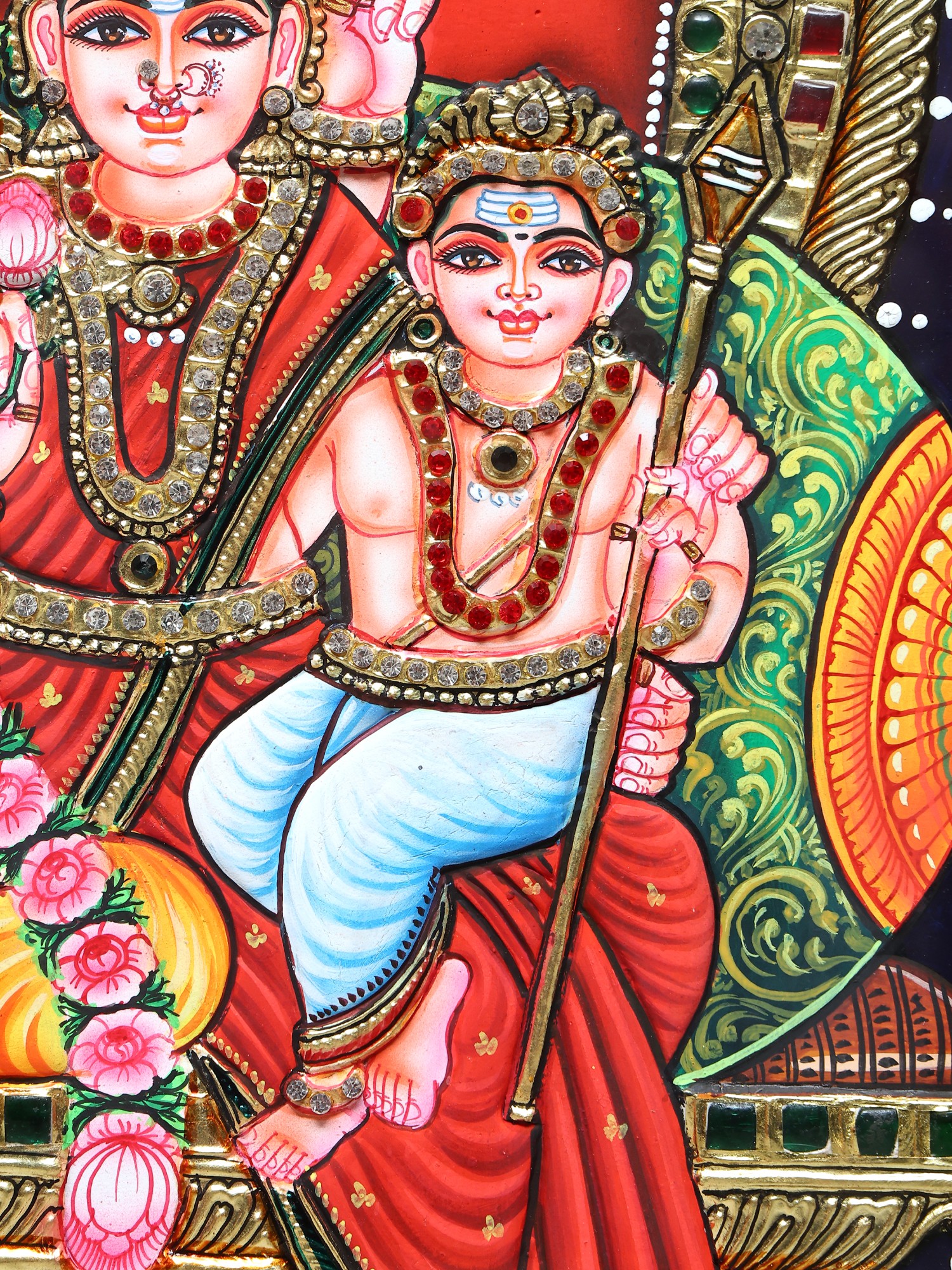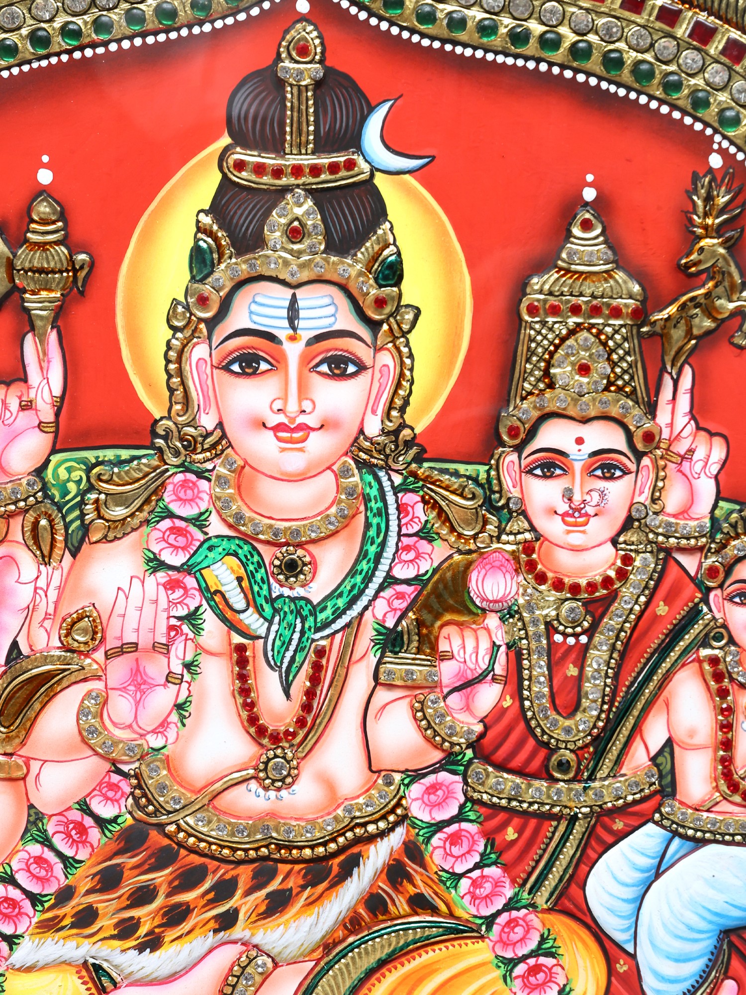 Lord Shiva Family Tanjore Painting | Traditional Colors with Gold Work