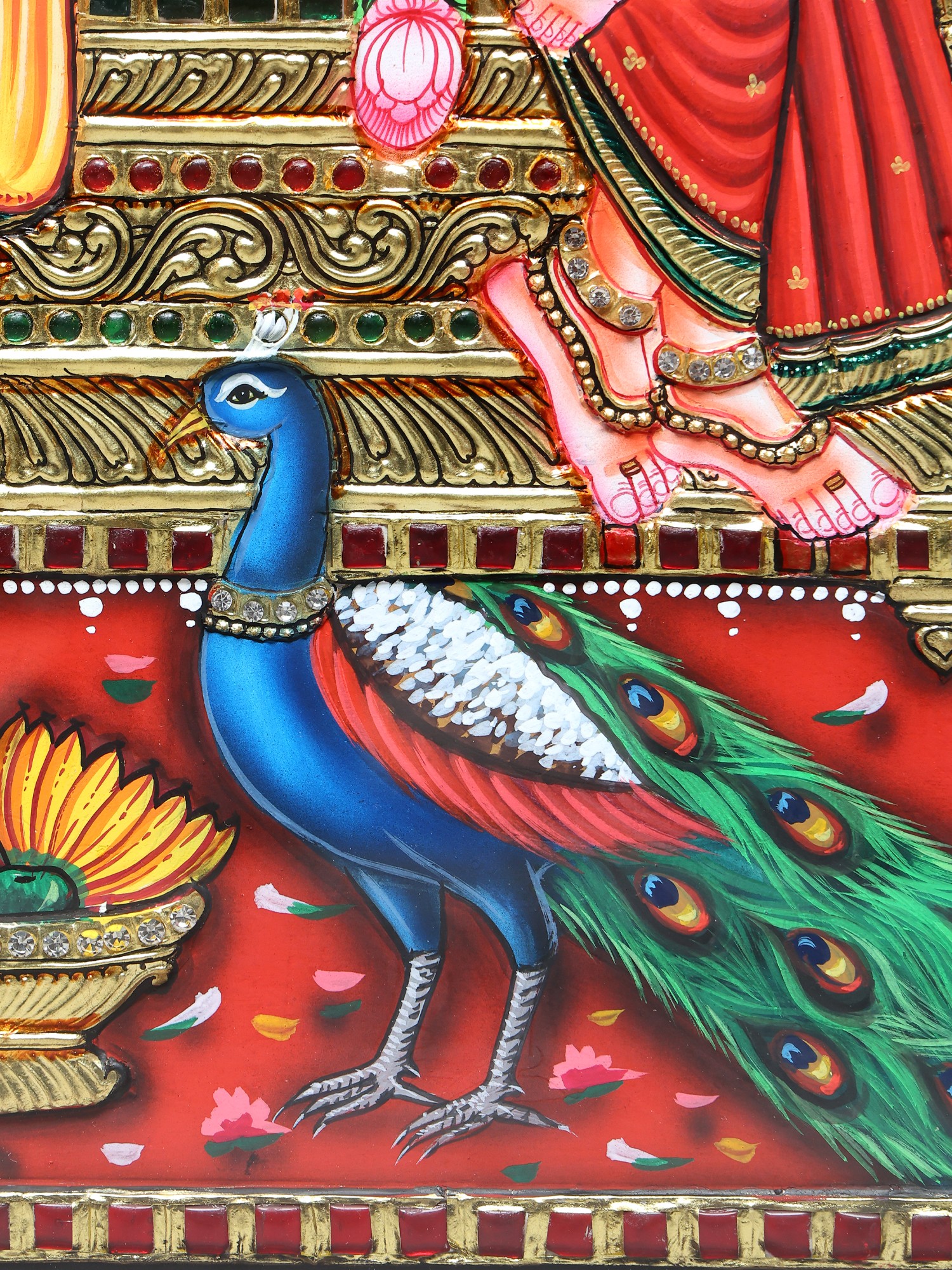 Divine Lord Kartikeya with Devasena and Valli | Traditional Colors with 24 Karat Gold | Framed Tanjore Painting