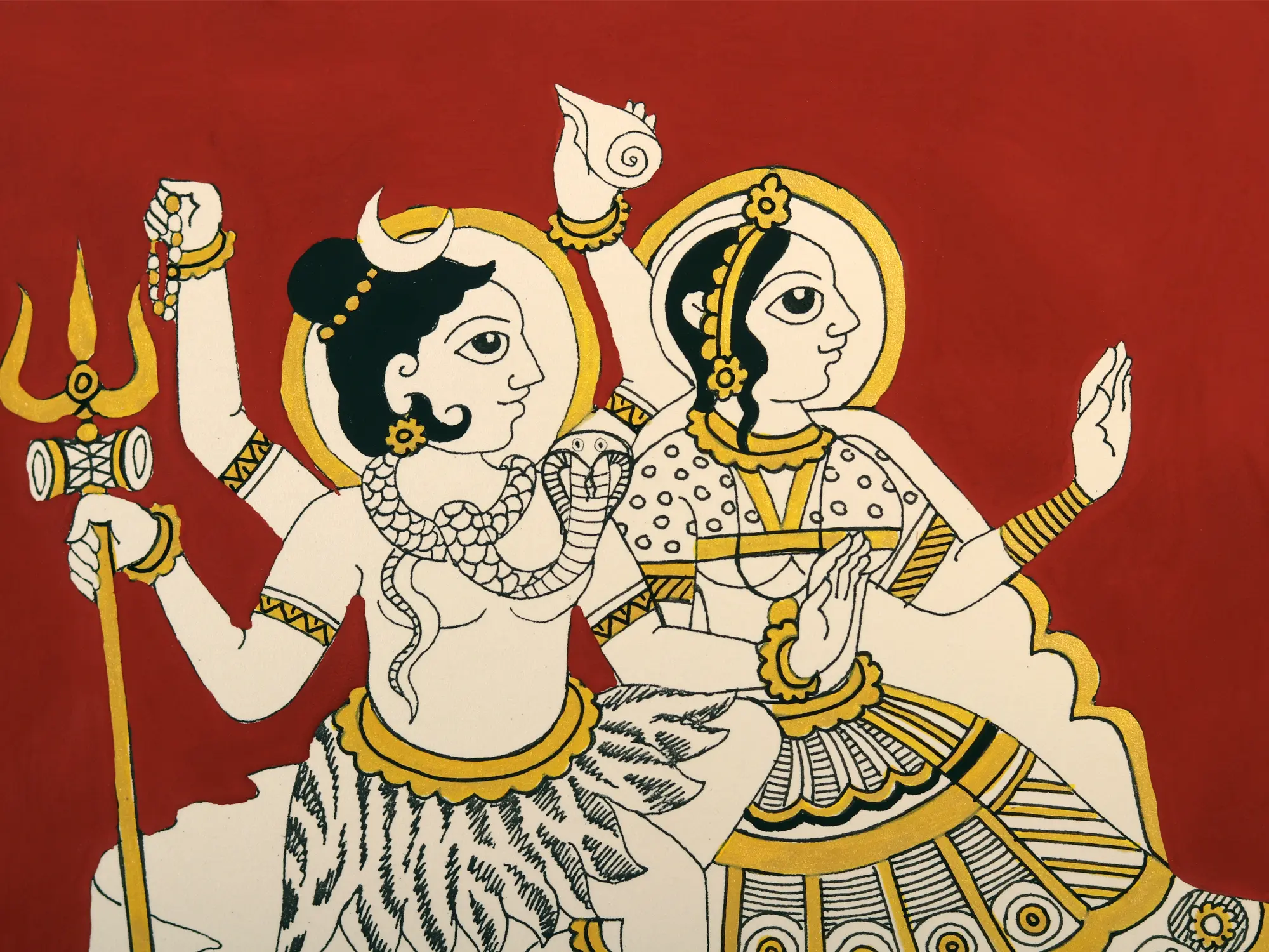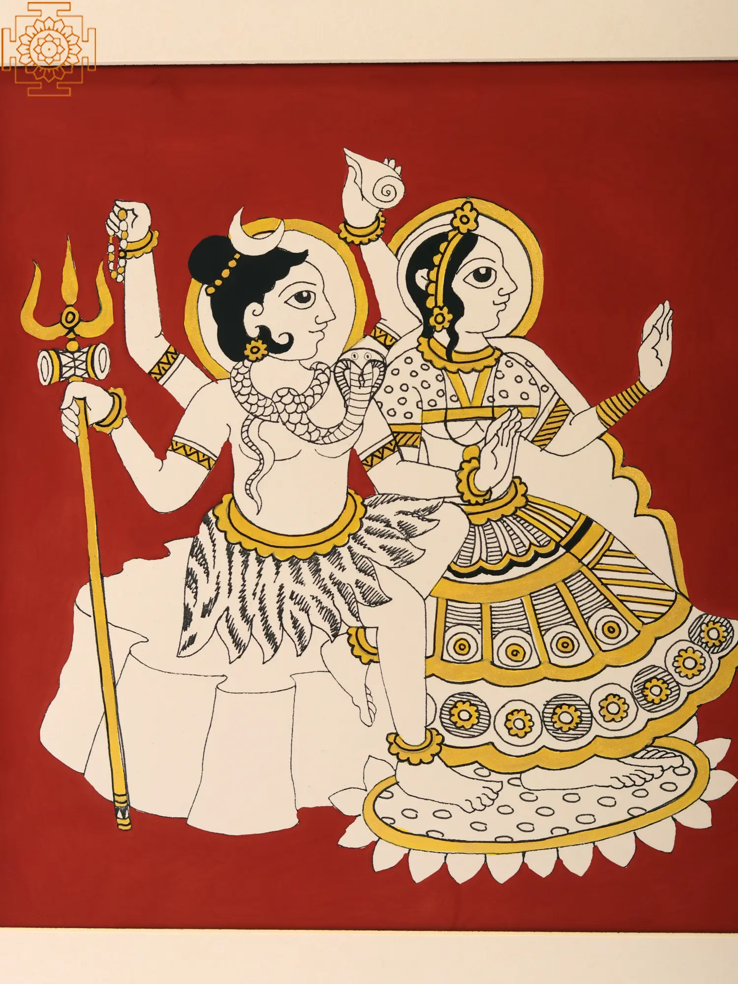This artwork draws inspiration from the profound mythology of the Himalayas, depicting the supreme deity, Lord Shiva, in union with his consort, Devi Parvati. Their presence together signifies the powerful balance of masculine and feminine energies, creation and destruction, and the profound depth of divine love. This representation resonates with the ancient philosophies that explore the interconnectedness of all existence.