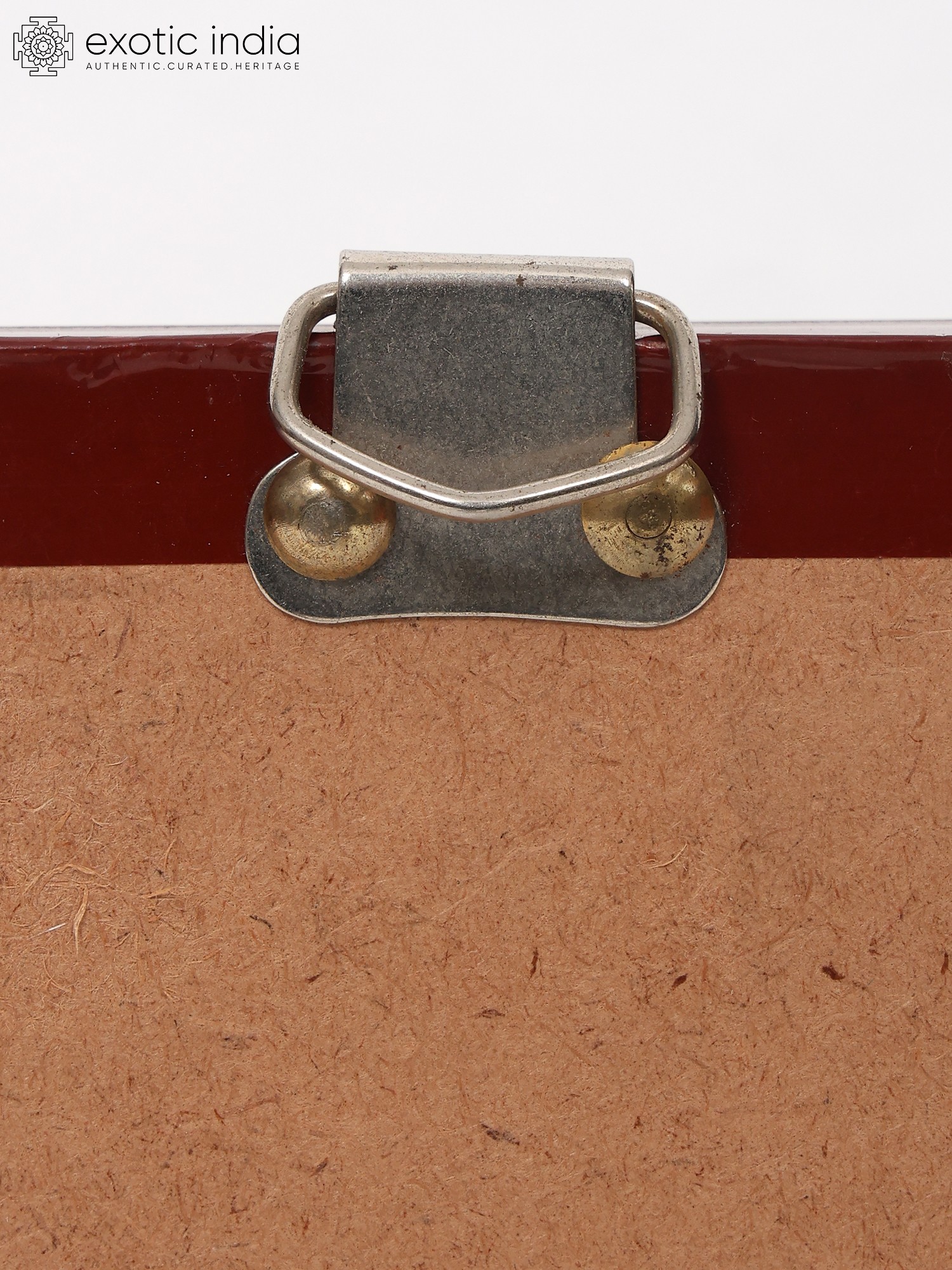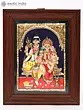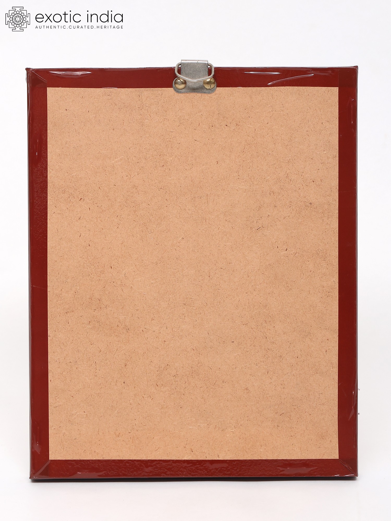 This artwork, framed by a golden arch and a beautiful wooden frame, not only captivates the eye but also symbolizes the virtues of an ideal Hindu family. Its presence infuses the environment with fortune, unity, and spiritual significance, making it a cherished addition to any home, resonating with the timeless values of familial love and togetherness.