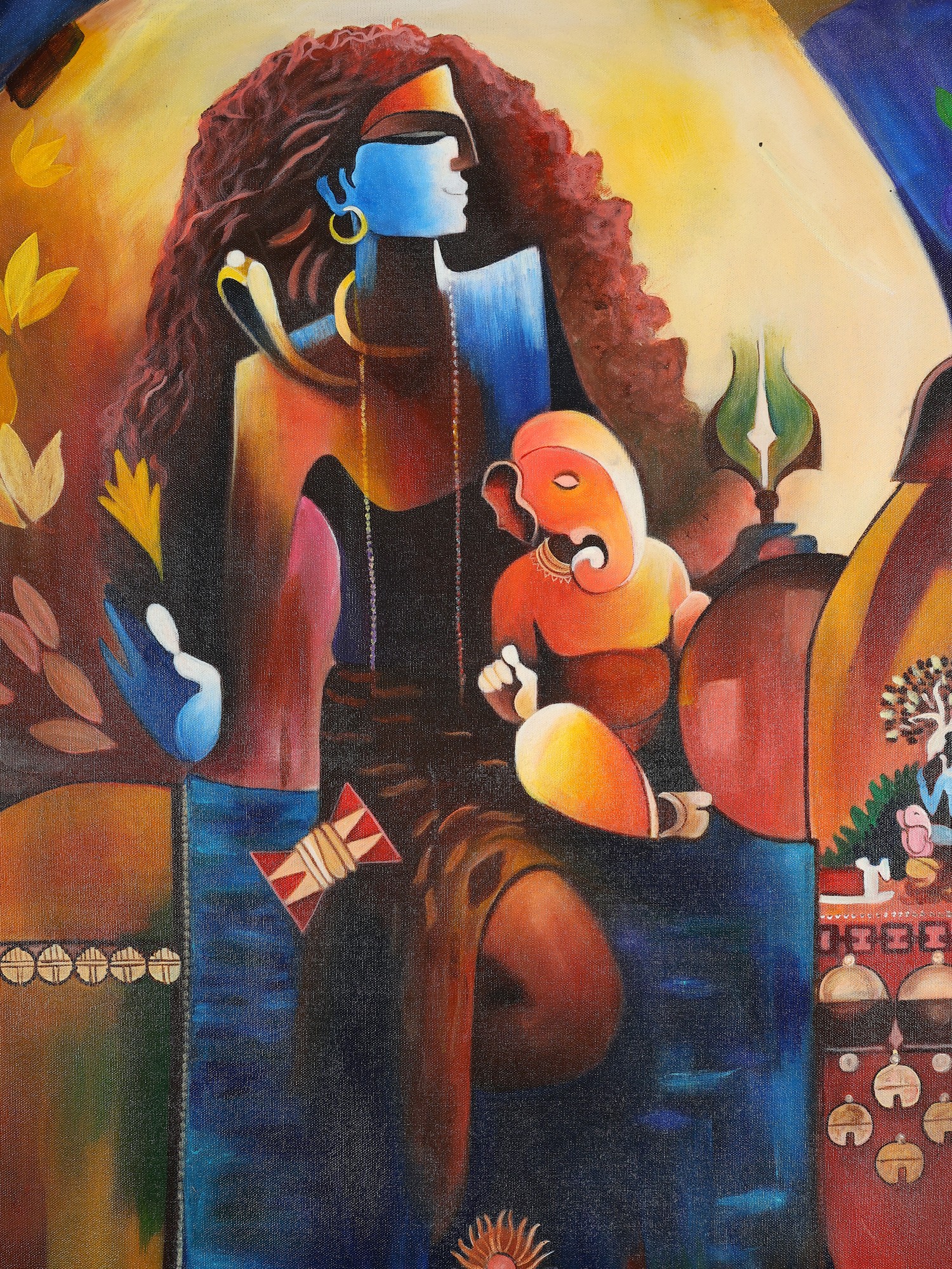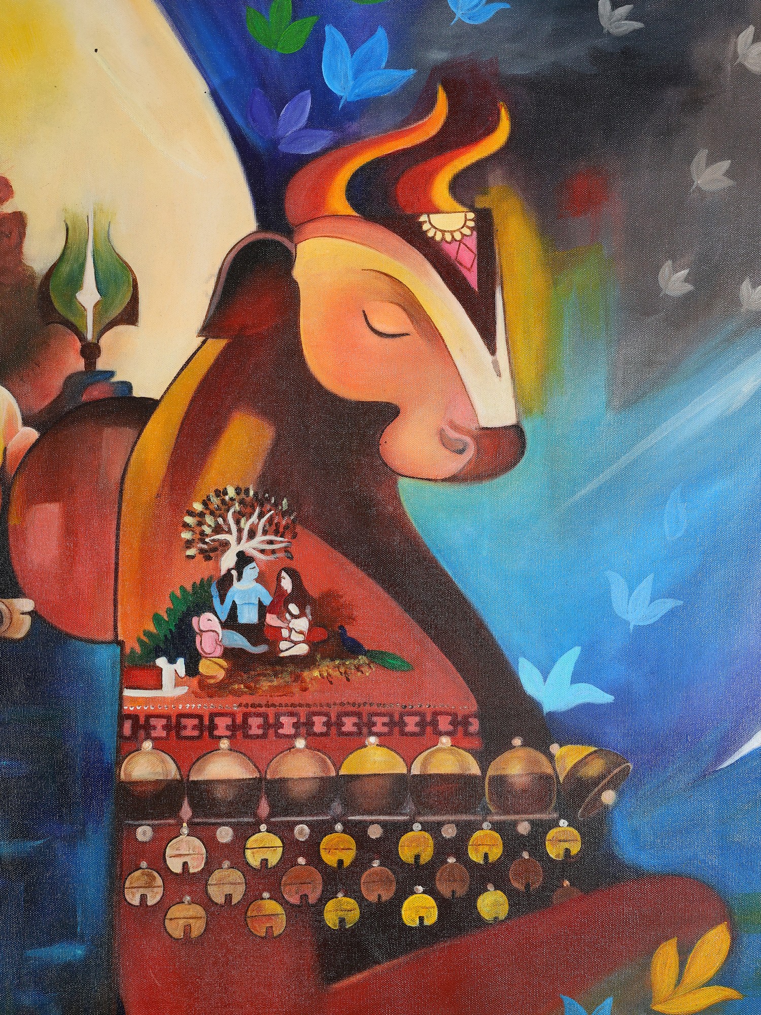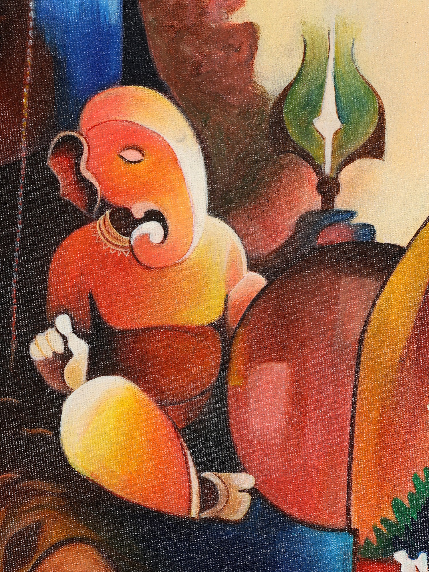 Elephants Worshipping Shivalinga | Oil on Canvas