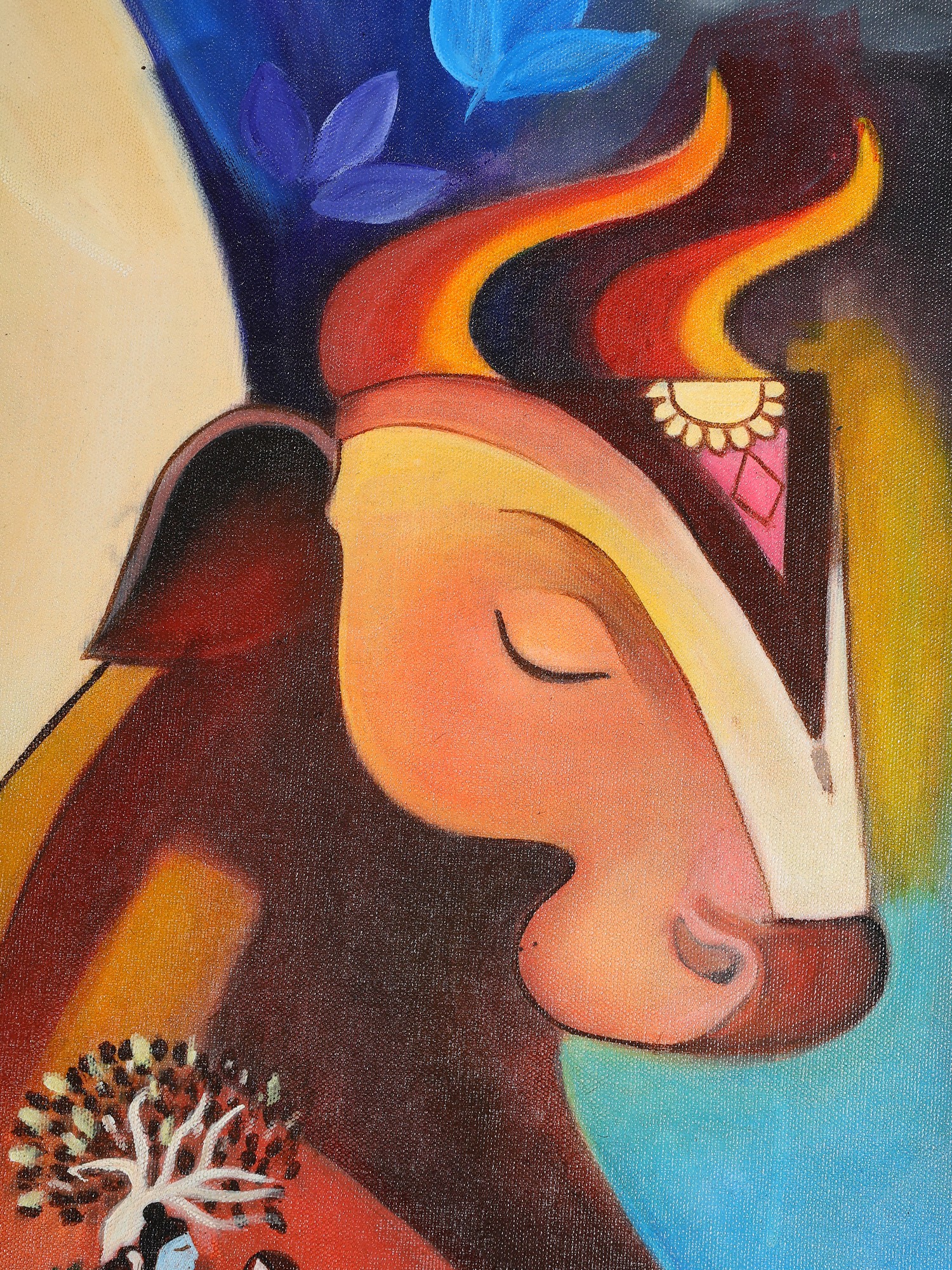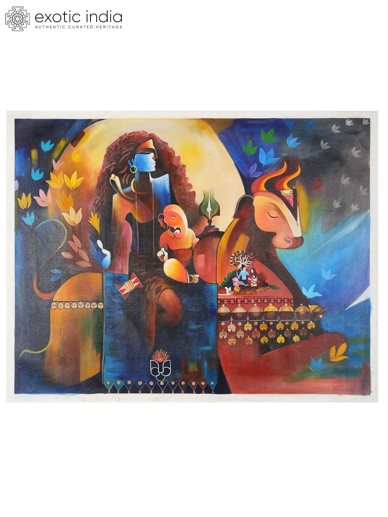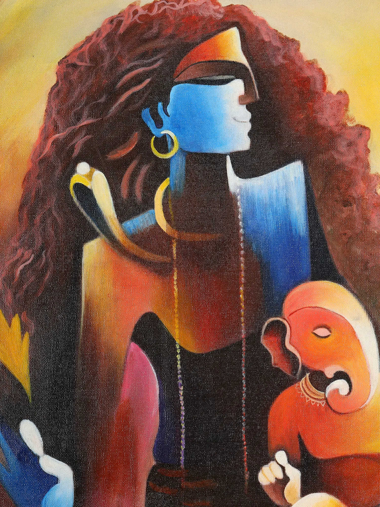 Elephants Worshipping Shivalinga | Oil on Canvas