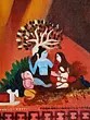 Ivory Kasavu Sari from Kerala with Embroidered Turbanned Bal Krishna Eating Butter