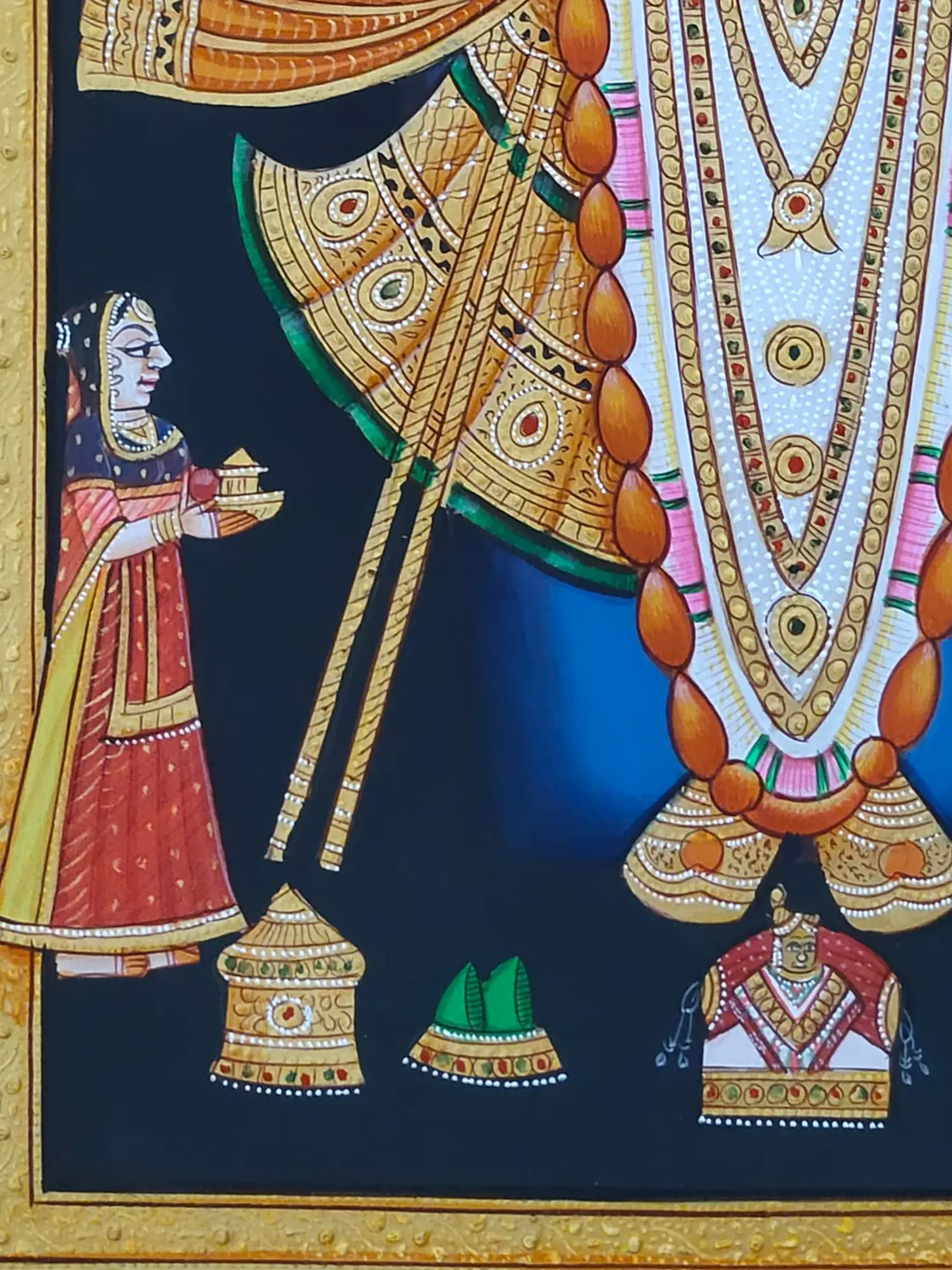 45" Lord Venkateshwara Gold Leaf Tanjore Painting with Frame