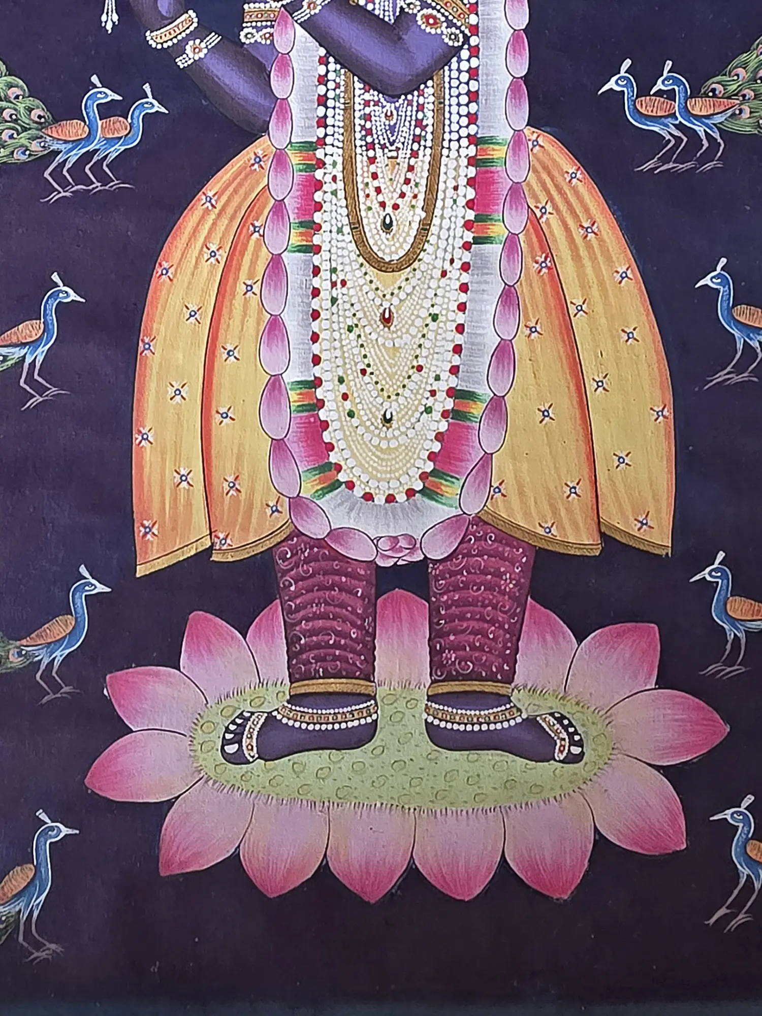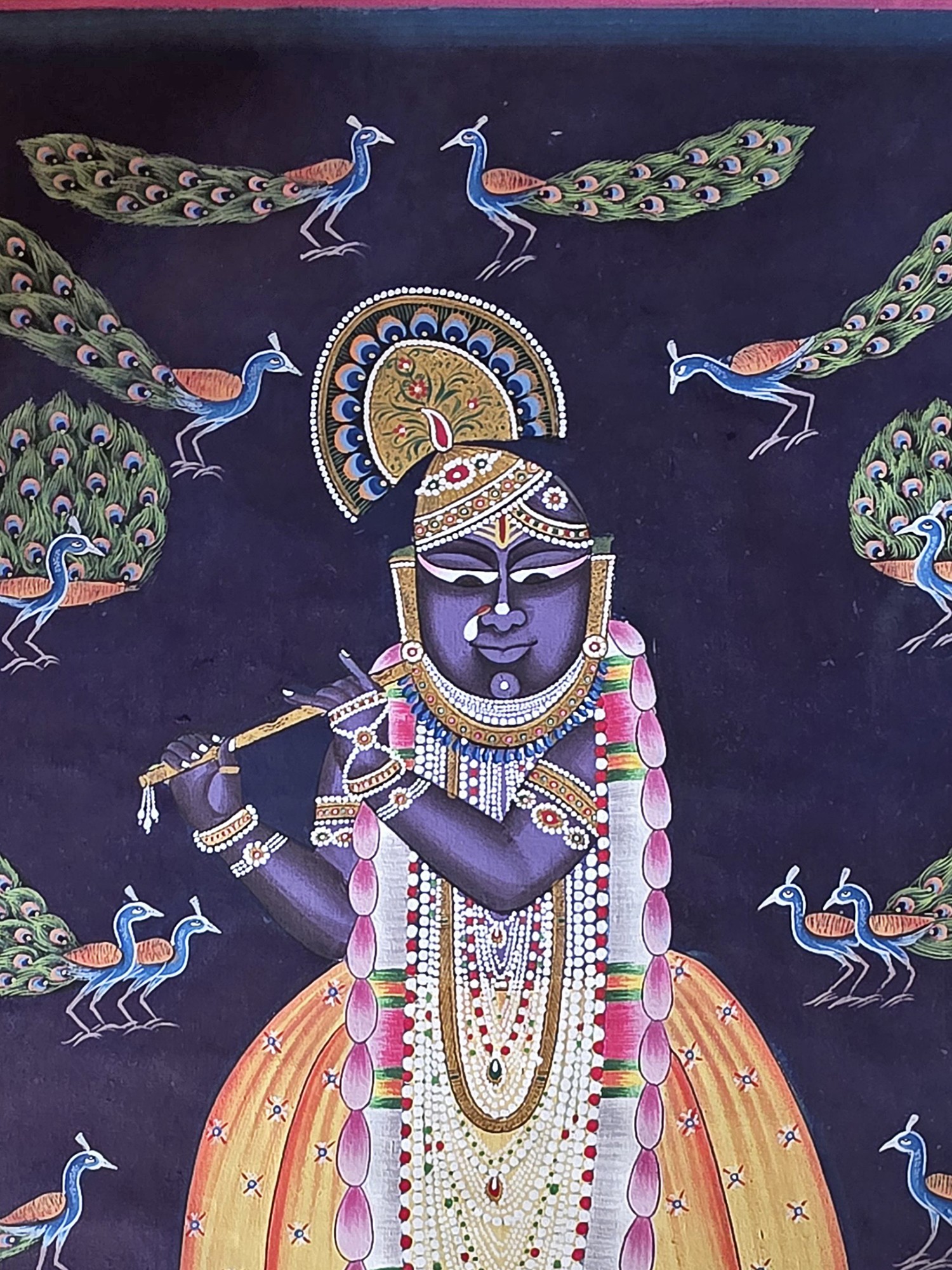 Lord Shrinathji Playing Flute Pichwai Painting | Natural Color On Cloth | By Dheeraj Munot