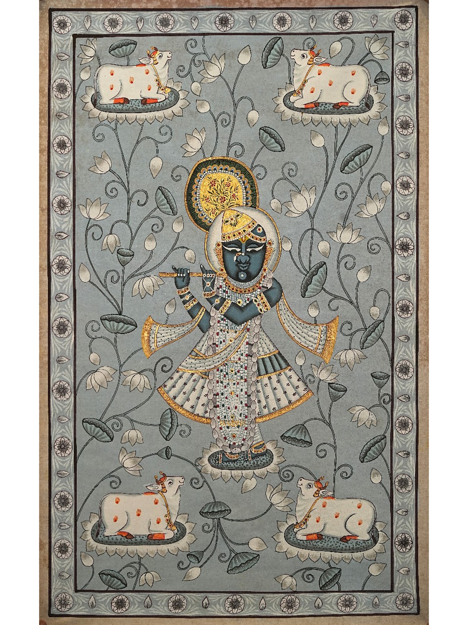 Lord Shrinathji Darshan Pichwai Painting | Watercolor On Cotton