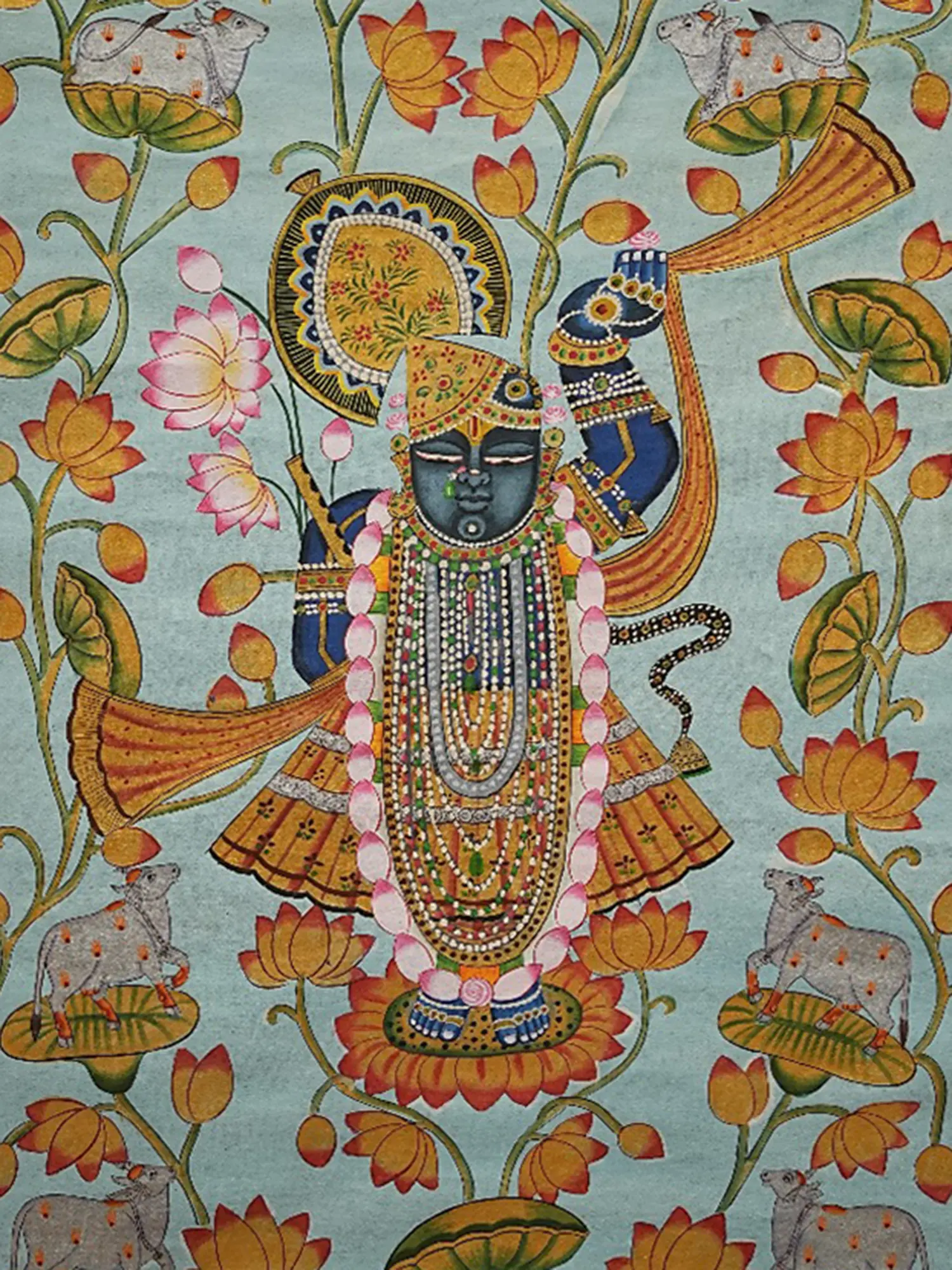 Lord Krishna As Shrinathji Pichwai Painting | Natural Color On Cloth | By Dheeraj Munot