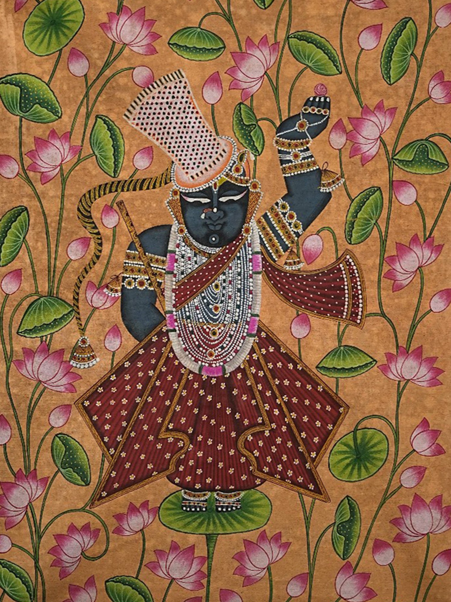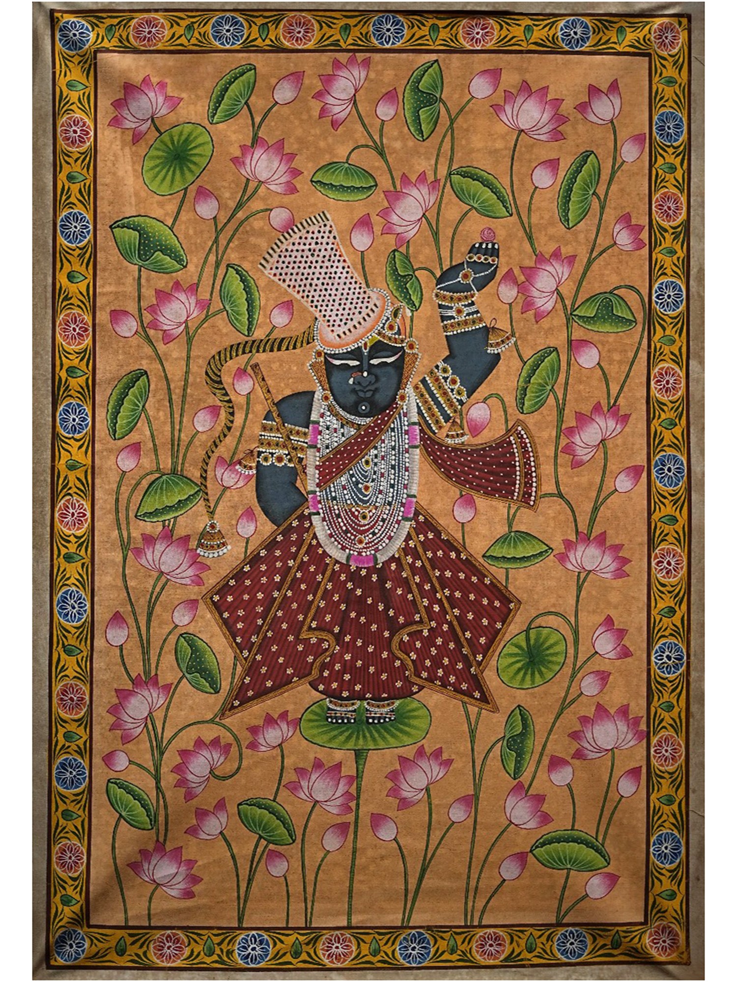 Lord Krishna As Shrinathji Pichwai Painting | Natural Color On Cloth | By Dheeraj Munot