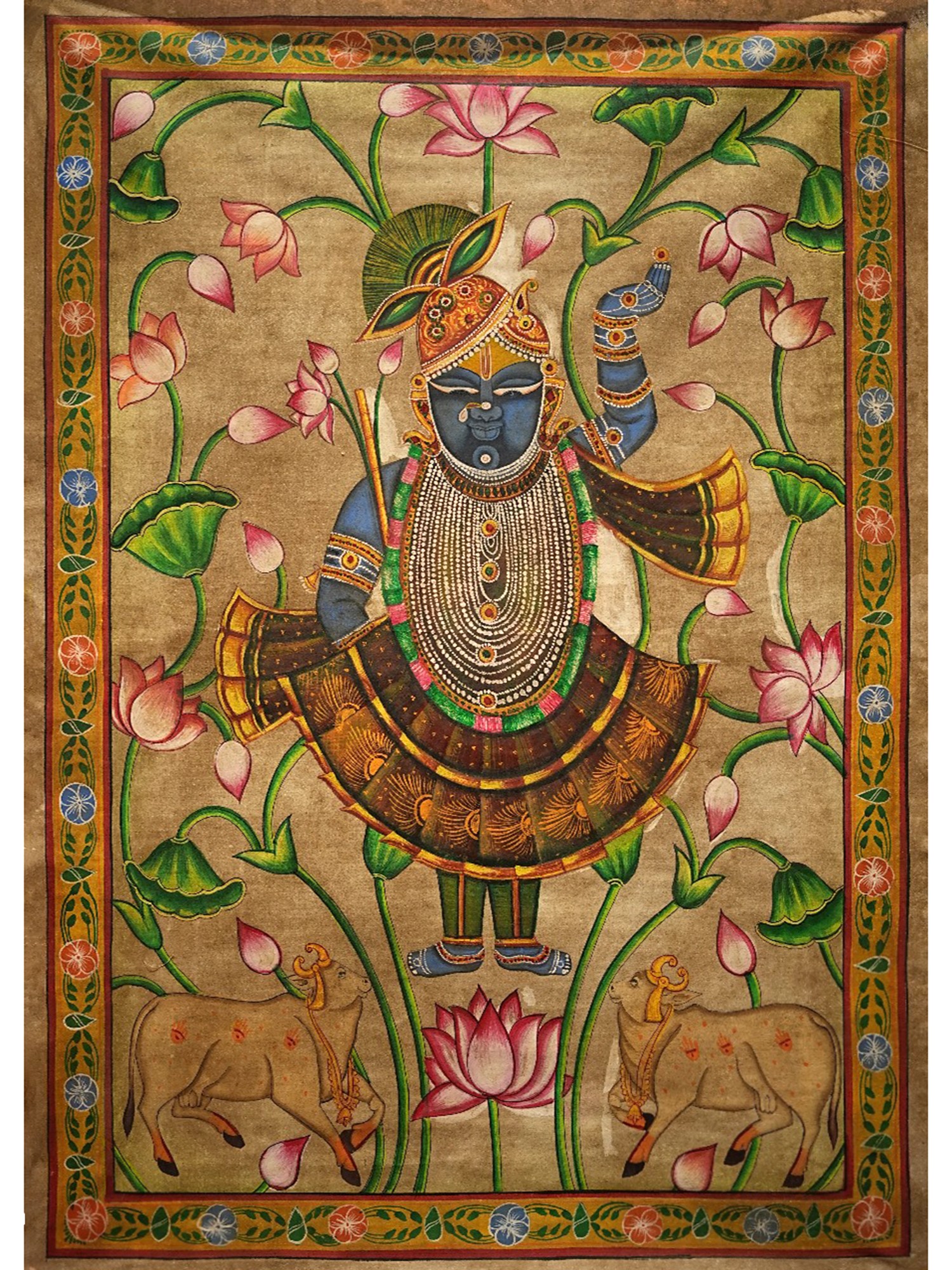 Lord Krishna As Shrinathji Pichwai Painting | Natural Color On Cloth | By Dheeraj Munot